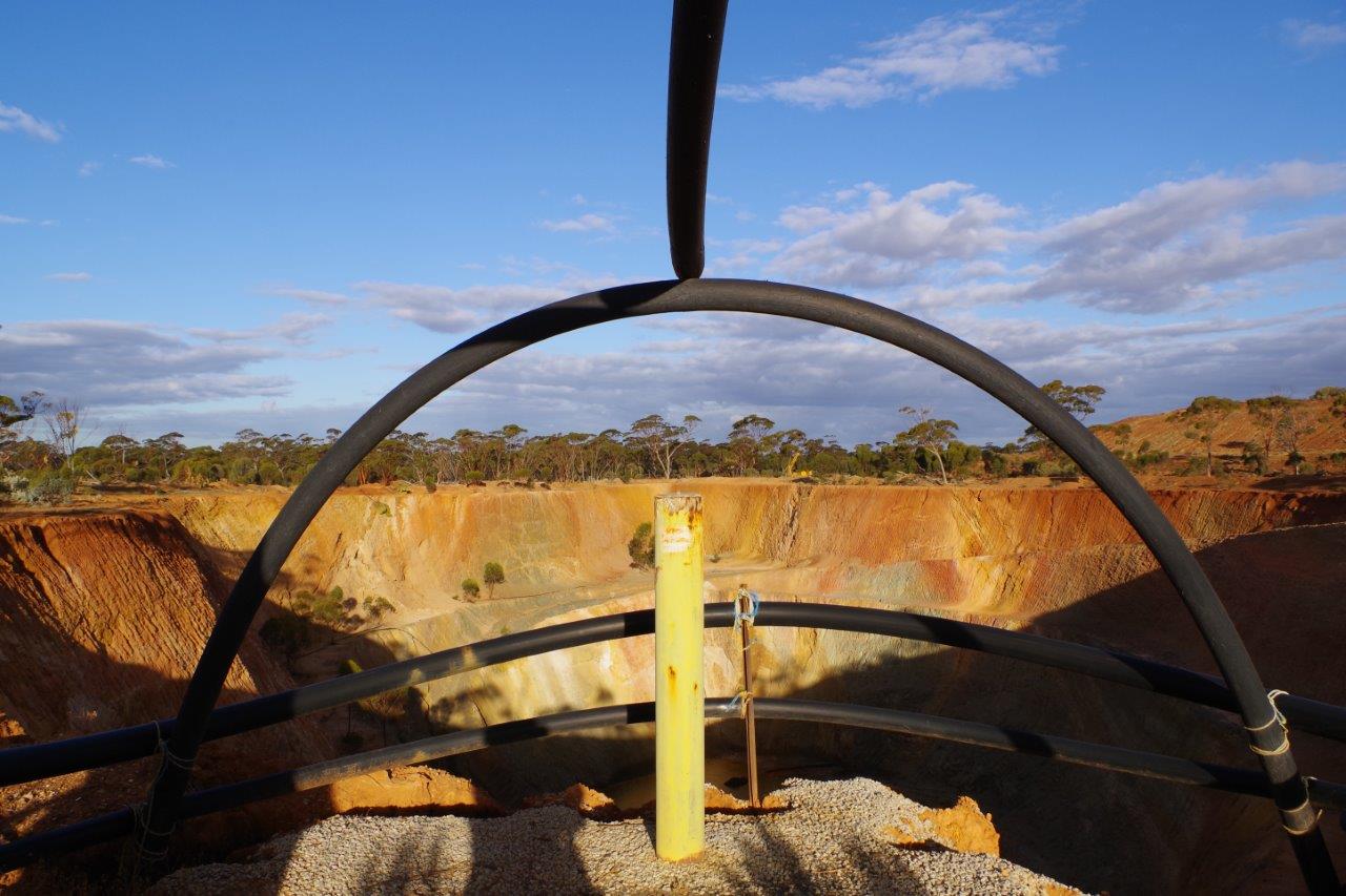 Markscheide-Ausguck an einem offengelassenem Goldtagebau bei Southern Cross, Western Australia.