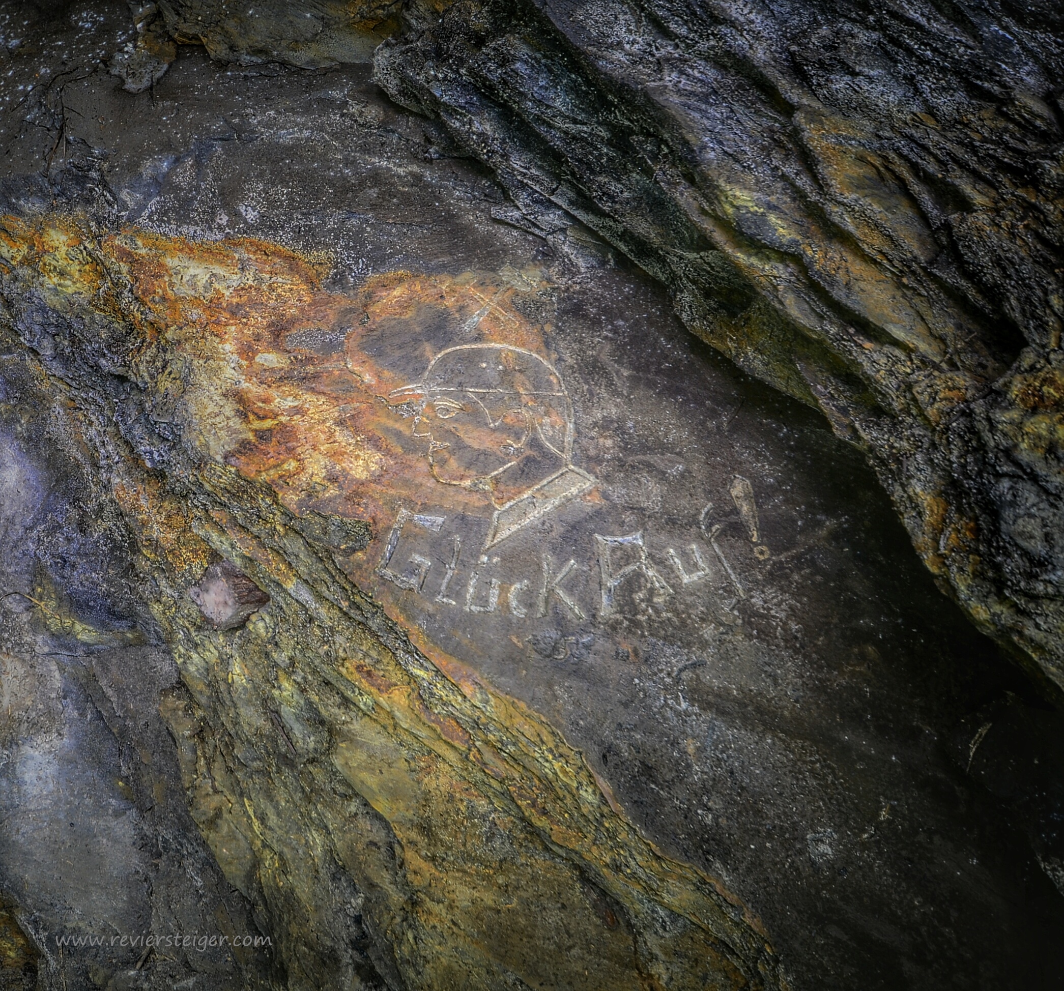 Ritzzeichnung aus den frühen 1960er Jahren am Stoß eines Füllortes im ehemaligen Erzbergbau,