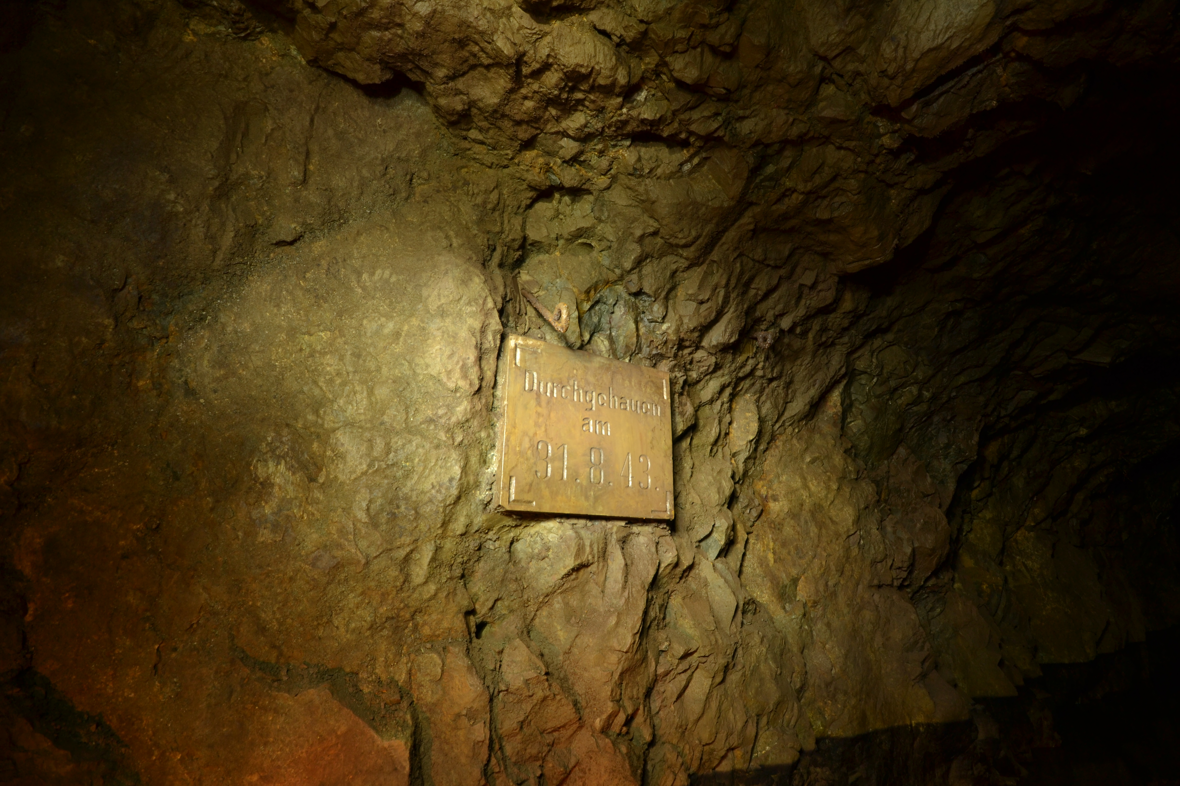 Tafel anläßlich des Durchschlages der 1. Sohle zwischen den Schächten 1 und 2 der ehemaligen Eisenerzgrube Büchenberg bei Elbingerode