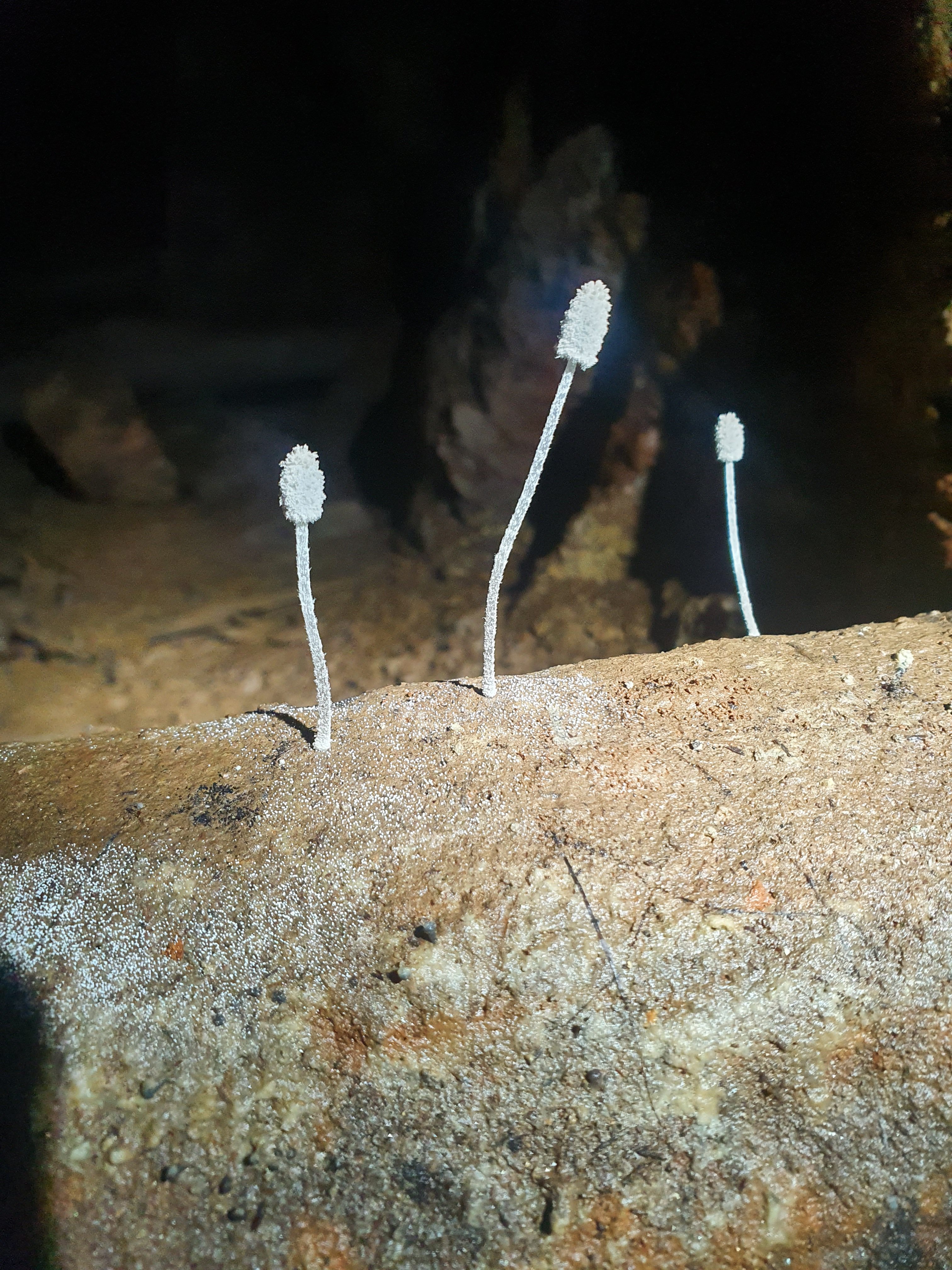 Hallo, neulich konnten wir bei einer Befahrung eine etwas außergewöhnliche Sekundärmineralsisation bewundern: Auf den ersten Bilck sah es aus bie Gipskristalle, doch hier war die Struktur anders. Es sah eher aus, wie ein Geflecht aus dünnen Härchen. Ich habe sowas schonmal im Revier von Brad Erbisdo...