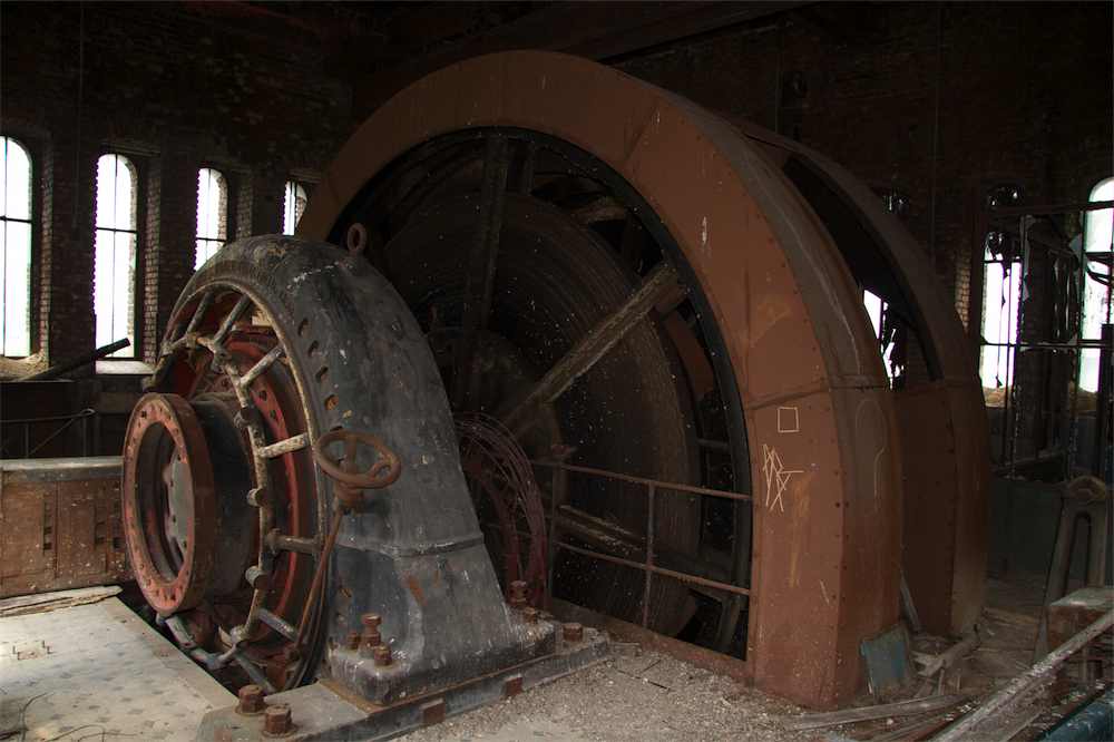 Ich versuche es nochmal hiermit: Fördermaschine Schacht 1 v. Oeynhausen, RAG Anthrazit Ibbenbüren. Baujahr 1913, Hersteller Fa. Buckau, Magdeburg. Erster Einsatz im Kalischacht Elisabeth der Gewerkschaft Wilhelmshall zu Anderbeck, Oschersleben, seit 1928 in Ibbenbüren. Die Maschine wird hauptsächlich für die Personen- und Materialfahrt zur 3. Sohle (Hauptwasserhaltung) eingesetzt.