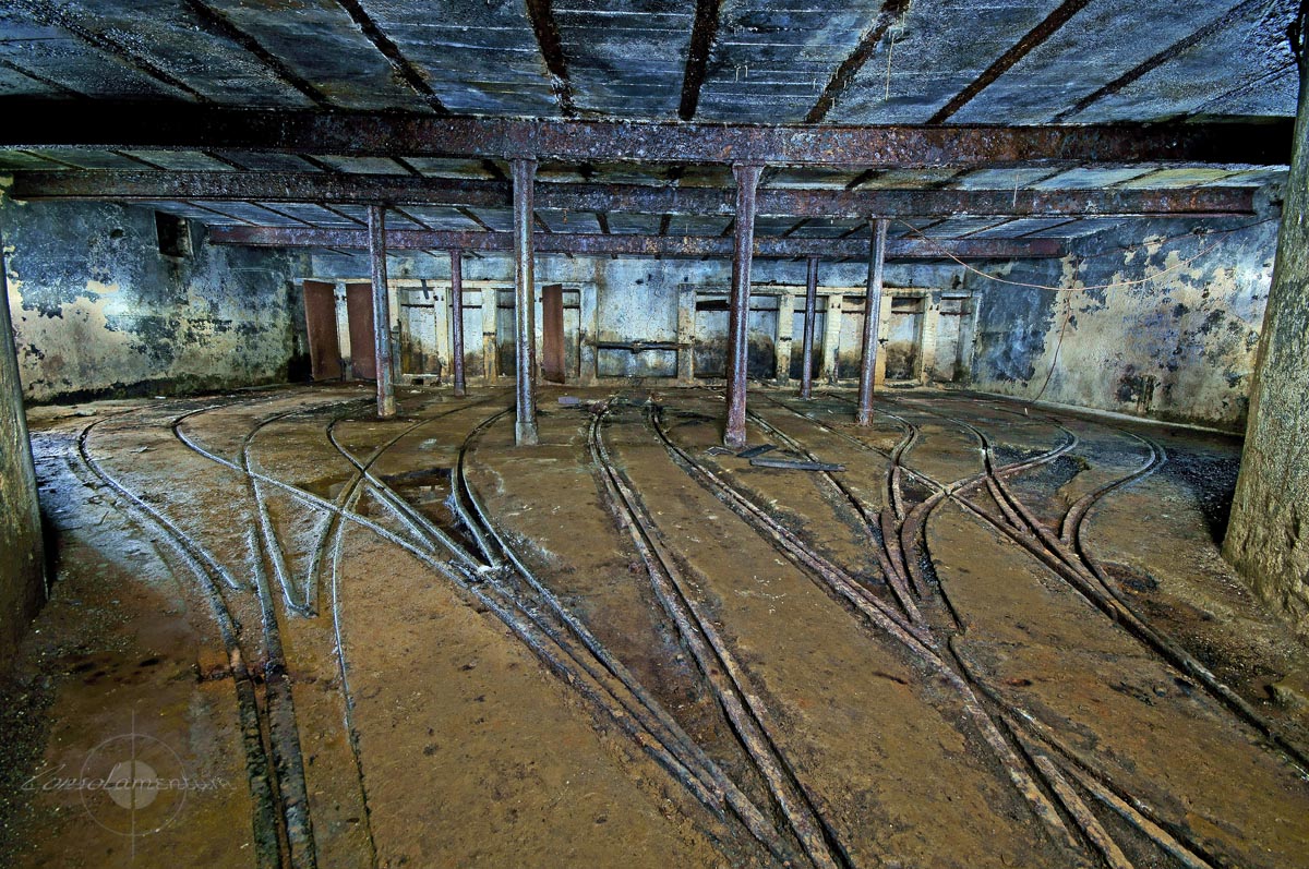 Schienen in einem Kalksteinbergwerk.