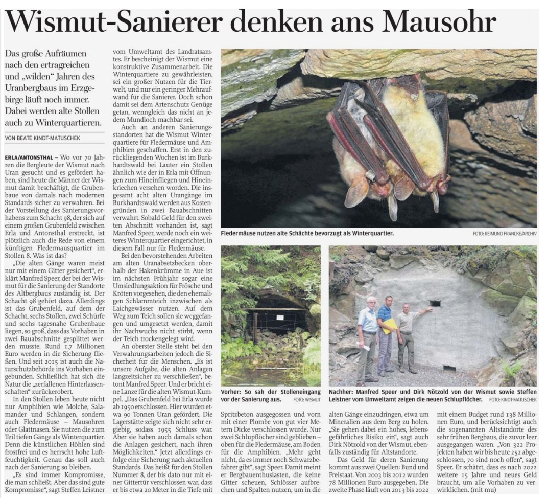 Hab noch mal ein wenig oben geblättert. "Wismut denkt an Mausohr". Im Revier gibt es einen Schacht 6 Stolln und 2 Schürfe. :x Eigentlich sollten die Sanierer wissen, das es 3 Schächte, 15 Stolln und 15 Schürfe sind. Also doch mal die Chronik lesen.