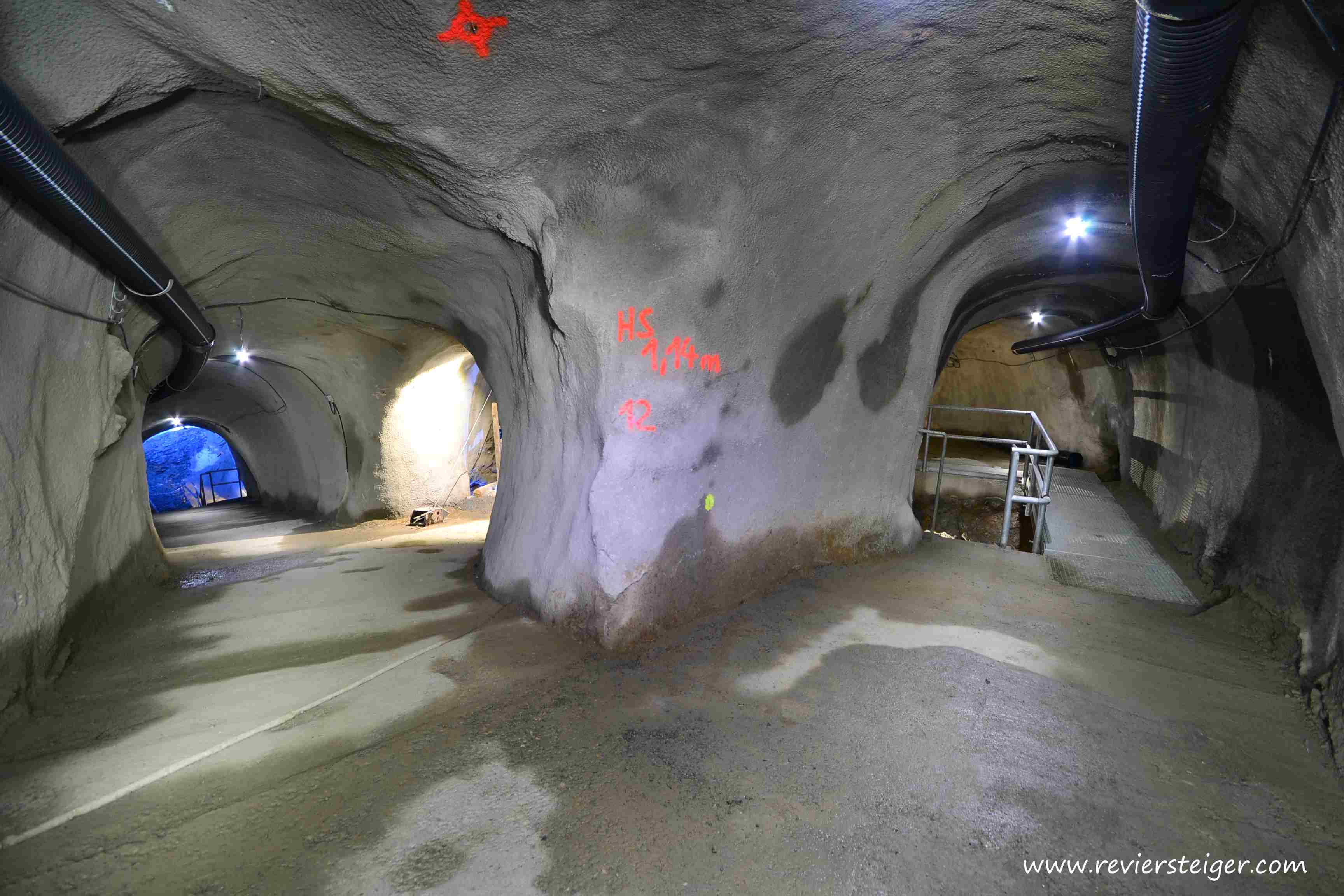 Die Standfestigkeit der Grubenbaue war offensichtlich so schlecht, dass man alles mit Spritzbeton sichern musste. Nur die für Besucher unzugänglichen Orte wurden im "Urzustand" belassen.