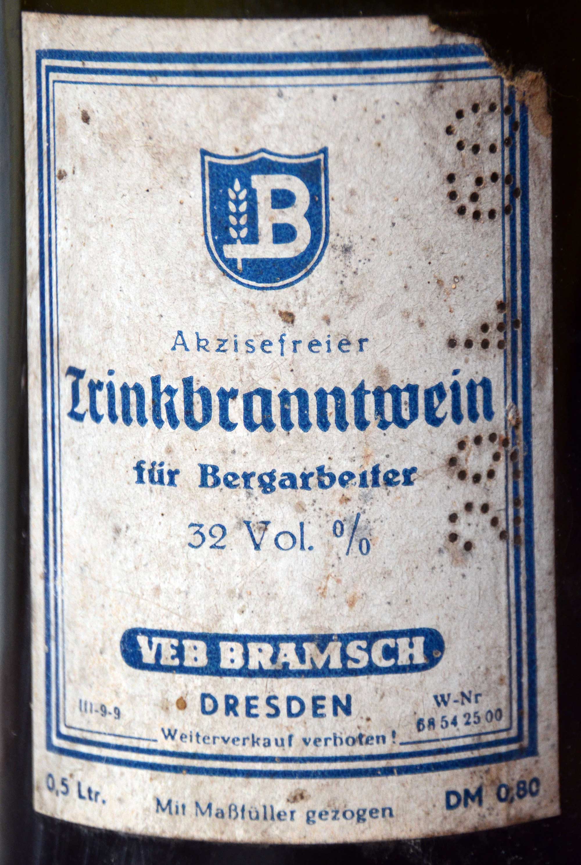 1945 wird die Firma unter Zollaufsicht der sowjetischen Besatzungsbehörden gestellt. Es wird Bergmannsschnaps (Bergmannsfusel) hergestellt.