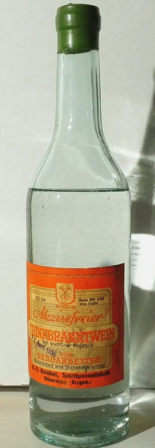 O.K. Was ich geschrieben habe, betrifft ja nur die Wismut. Wenn es das schon 1946 gab, auch im Mansfeldischen, dann gibt es einen Befehl der SMAD. Der besagt aber erst mal nichts, da er in den Ländern erst durch einen eigenen Befehl umgesetzt werden mußte. In Sachsen die SMA. Da ist mir aber nichts bekannt. Hab ja mal auf der Suche nach Befehlen die die Wismut betreffen dort gesucht. Hab natürlich nicht alle Befehle gefunden. Am 4. Juni 1946 gab es den Befehl 23 und am 30. Mai 1947 den Befehl (hier geht es schon los) 113 oder 131. Wenn denn in Freiberg dieser Schnaps schon 1946 verkauft wurde, liegt der Befehl irgendwo zwischen 23 und 113/131. Wen es interessiert, der kann die Befehle im Staatsarchiv Dresden unter, 11393 Landesregierung Sachsen, Ministerium für Handel und Versorgung, einsehen.
