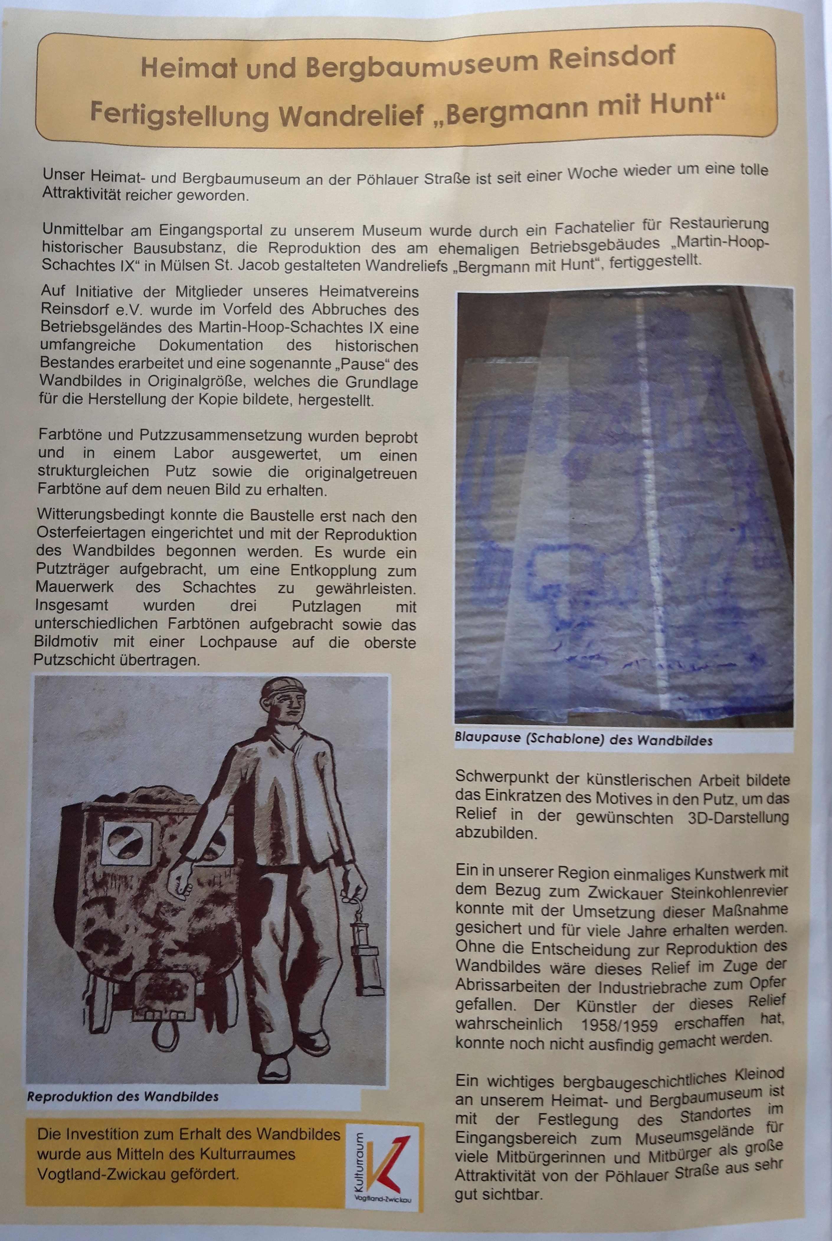Das Wandbild von Martin-Hoop IX wurde mit modernster Technik kopiert und auf Martin-Hoop II (=Reinsdorfer Bergbaumuseum) wieder rekonstruiert.