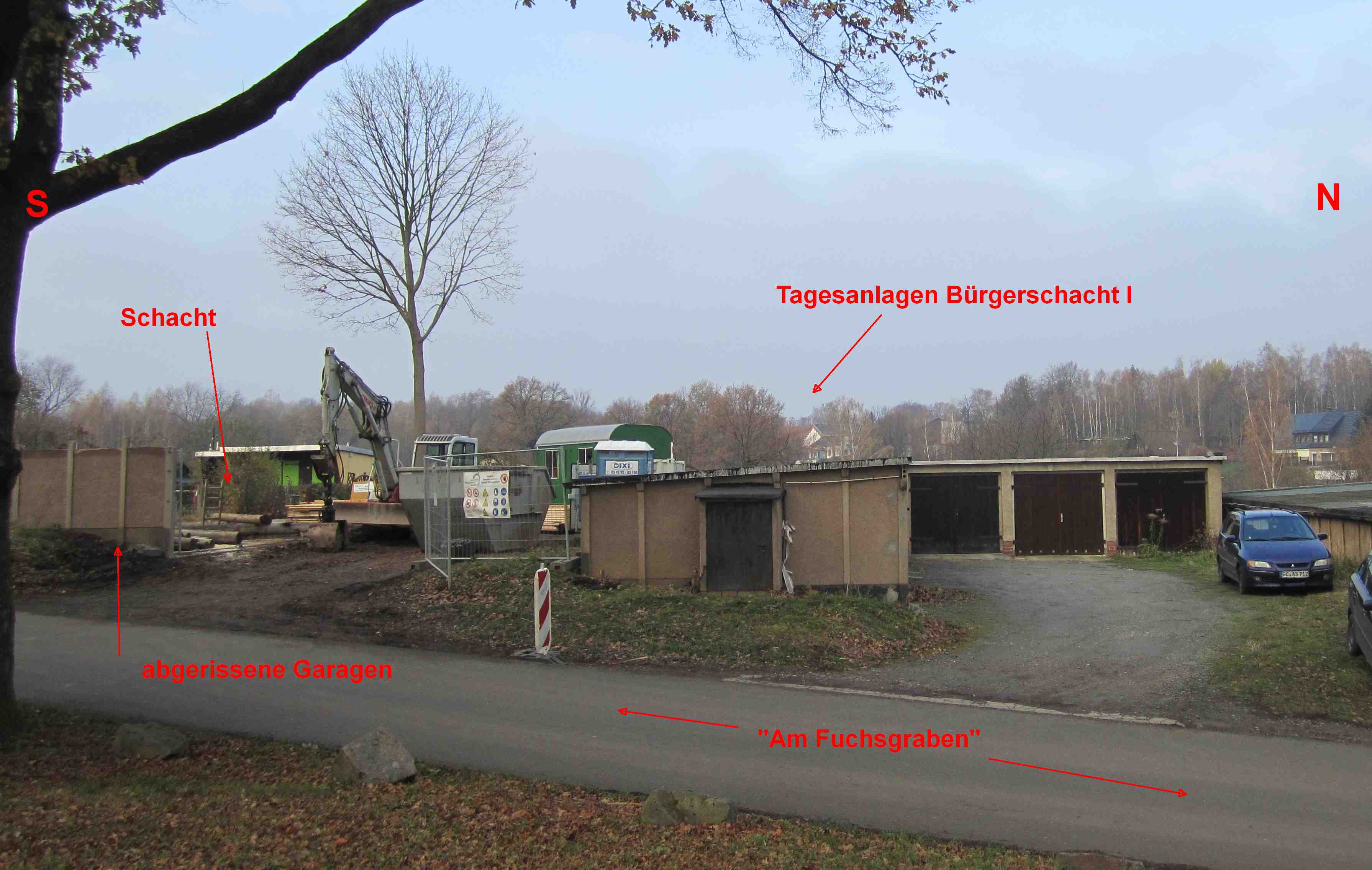 https://maps.google.de/maps?q=zwickau&l ... e&t=h&z=19 , die südlichste Garagenzeile. Leider war es schon zu Dunkel, um Bilder zu schießen. Ausführende Firma ist die Bergsicherung Sachsen. Der mir bekannte Schacht Kästner lag, wie gesagt, einige 100 m weiter östlich, Katasterriß liegt vor. Mir ist auch nicht bekannt, daß das Stkw Kästner zwei Schächte gehabt hätte.