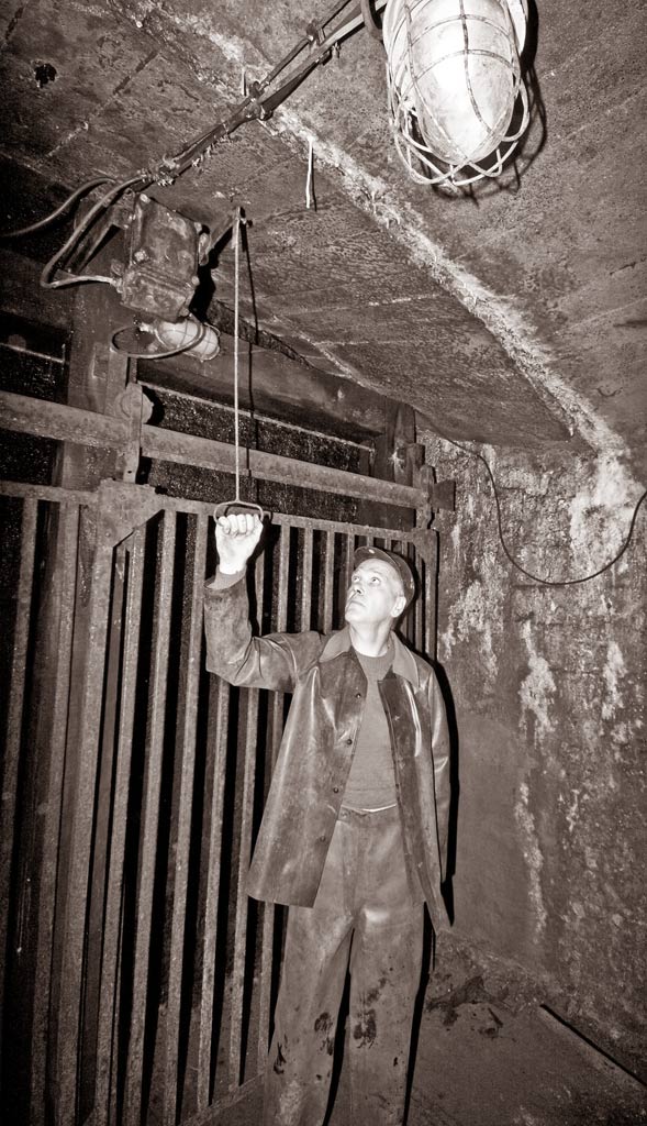 "Drei Schläge Hängen" im Büchenberg/ Elbingerode Besucherteil, historisierende Fotosession mit Gerd H. für Buch "Grube Büchenberg" 2012