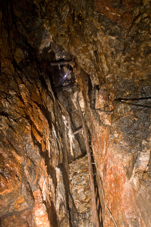 Die über den "Christof Stolln" erreichbare Zinnkammer der "Mauritius Fundgrube" nahe Hengstererben in einer Teilansicht.