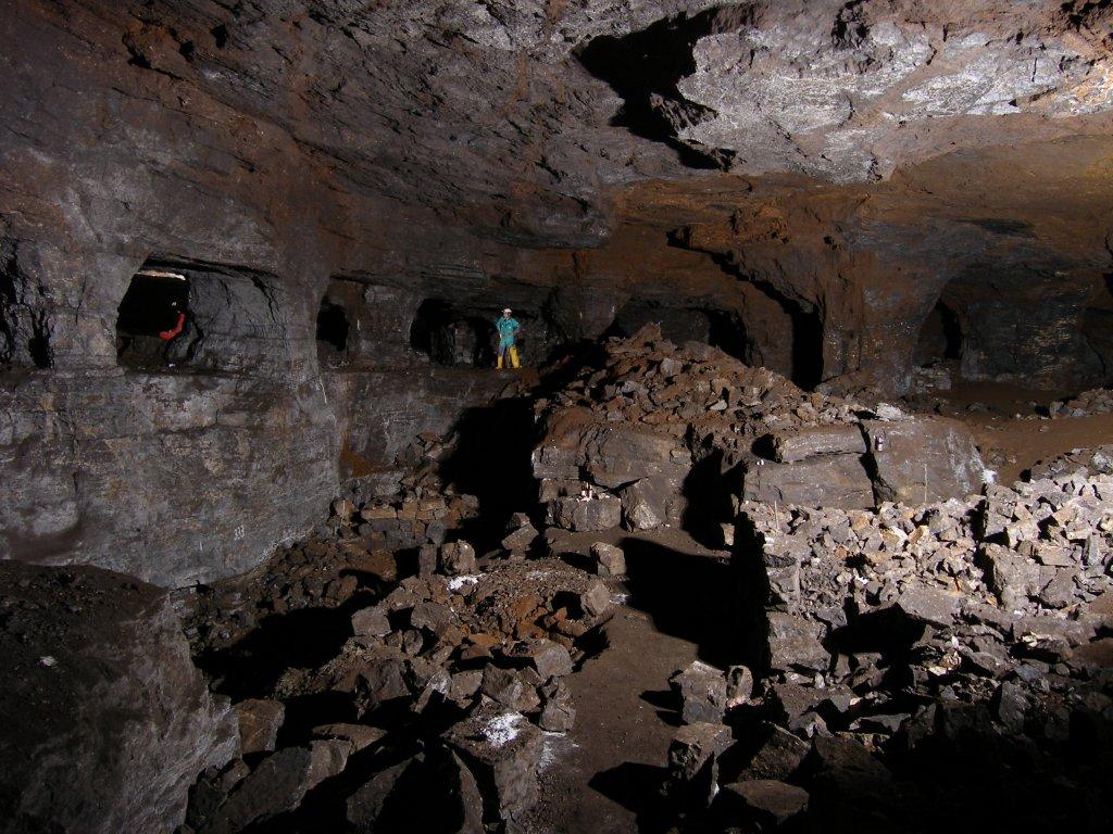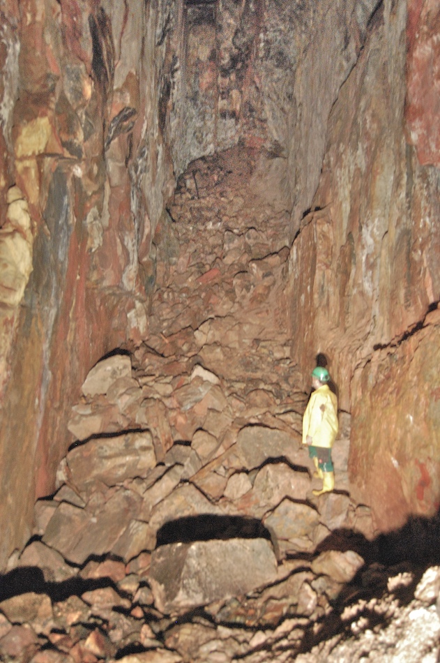 Hohlraum im Bergbaubetrieb Reust SDAG Wismut nach einer Magazinierungssprengung zur Untertagelaugung