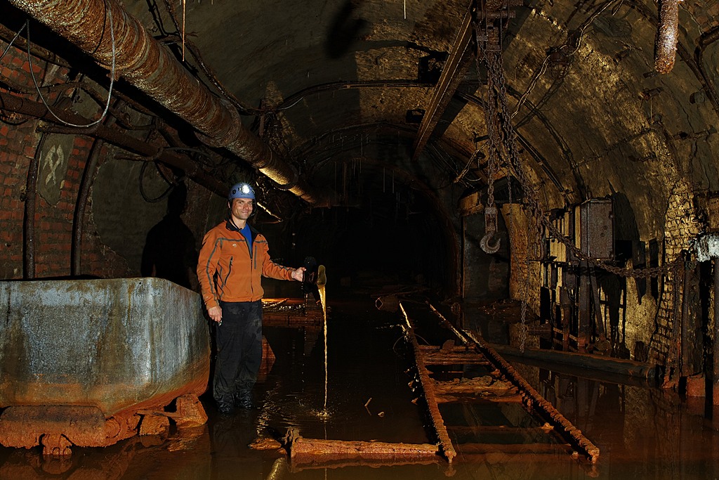 Hier eine Lüfternische (ca.1948-50) der Wismut im Altbergbau (ca.1850 - Bernhardt Stolln).