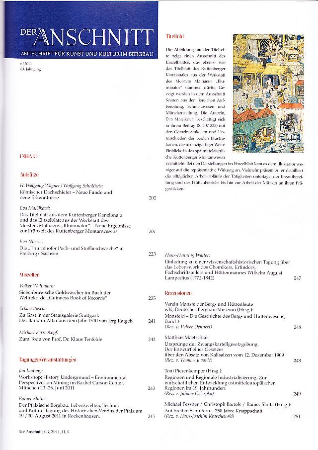 Habe ein überzähliges Exemplar der Zeitschrift "Der Anschnitt 6/2011" inkl. Bibliographie zur Montangeschichte 2010 und Jahresbericht VFKK zu Hause herumliegen, dass ich gerne los werden möchte. Der Zustand ist gut.