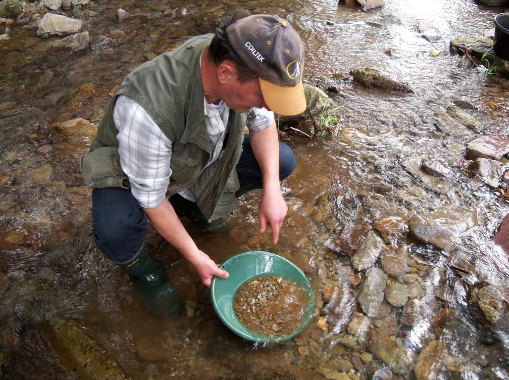 Die Reste der Lagerstätte sind entweder unter Wasser oder hinter Museumstüren verschlossen. Zudem bewegte sich die Korngröße des Goldes im einstelligen µm-Bereich, eingewachsen zwischen und auch in den Mikrokristallen der übrigen Erzbestandteile. Das dürfte mit der Waschpfanne schwierig werden.