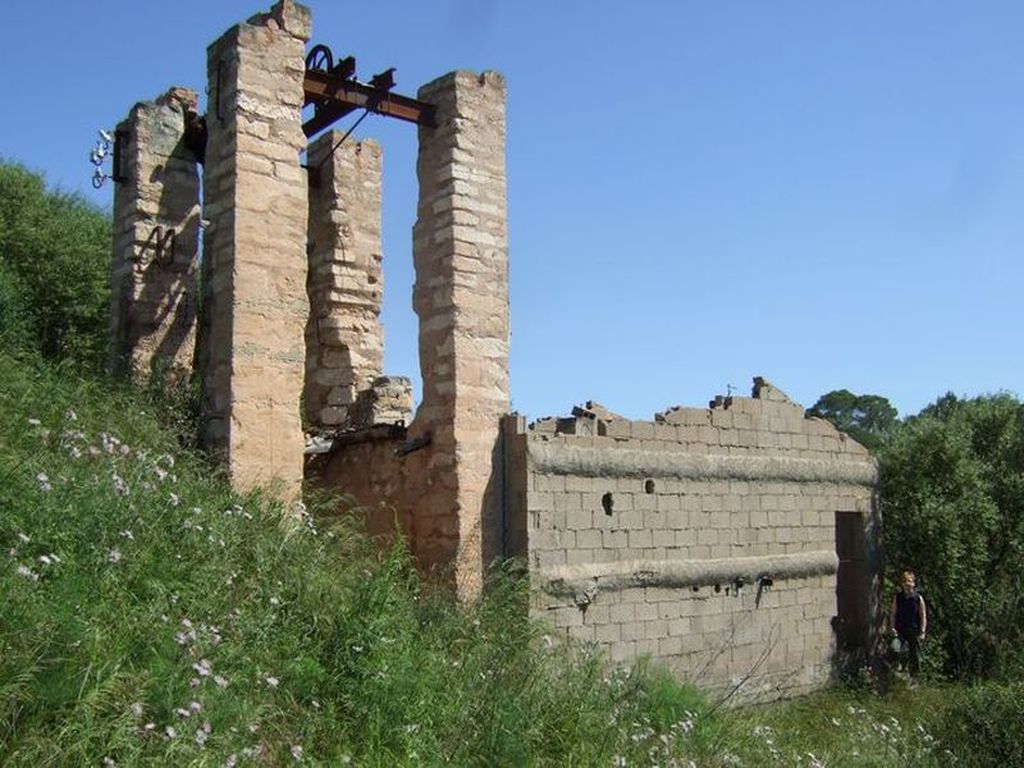 Schachtruine bei 35 Grad im Schatten (Braunkohlebergbau bei Sineu/Mallorca)