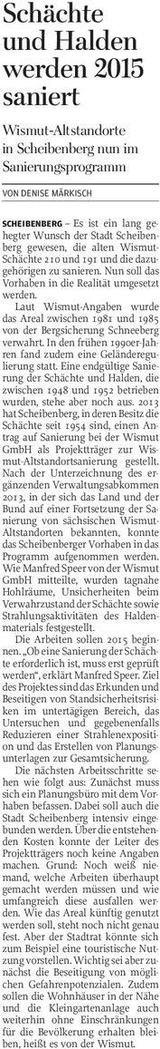 "... die alten Wismut-Schächte 210 und 191 und die dazugehörigen zu sanieren." :? da hat man wohl "Halden" vergessen, oder?