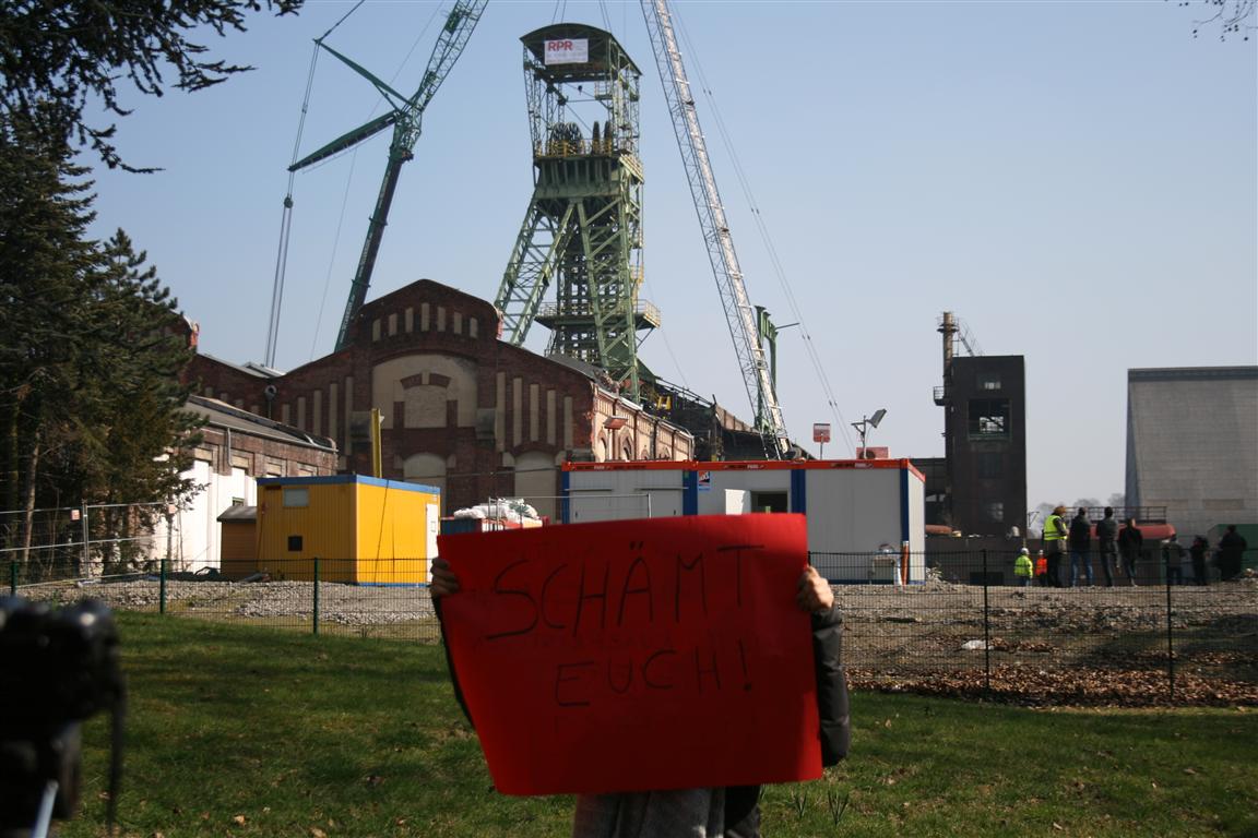Kleine Geschichte am Rande mit besonderer Tragik. Das Schild wir von einer jungen Frau hochgehalten, die selbst an Krebs erkrankt ist. Dennoch rührte sie der Abbruch zu Tränen.