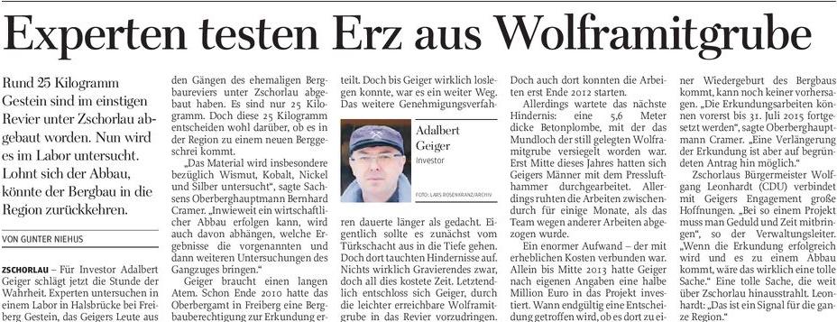 Großpösna. Eigentlich wollte der Großpösnaer Edelmetallhändler Adalbert Geiger mit seiner Sachsenerz Bergbau GmbH im Erzgebirge bei Zschorlau nach Silber suchen.