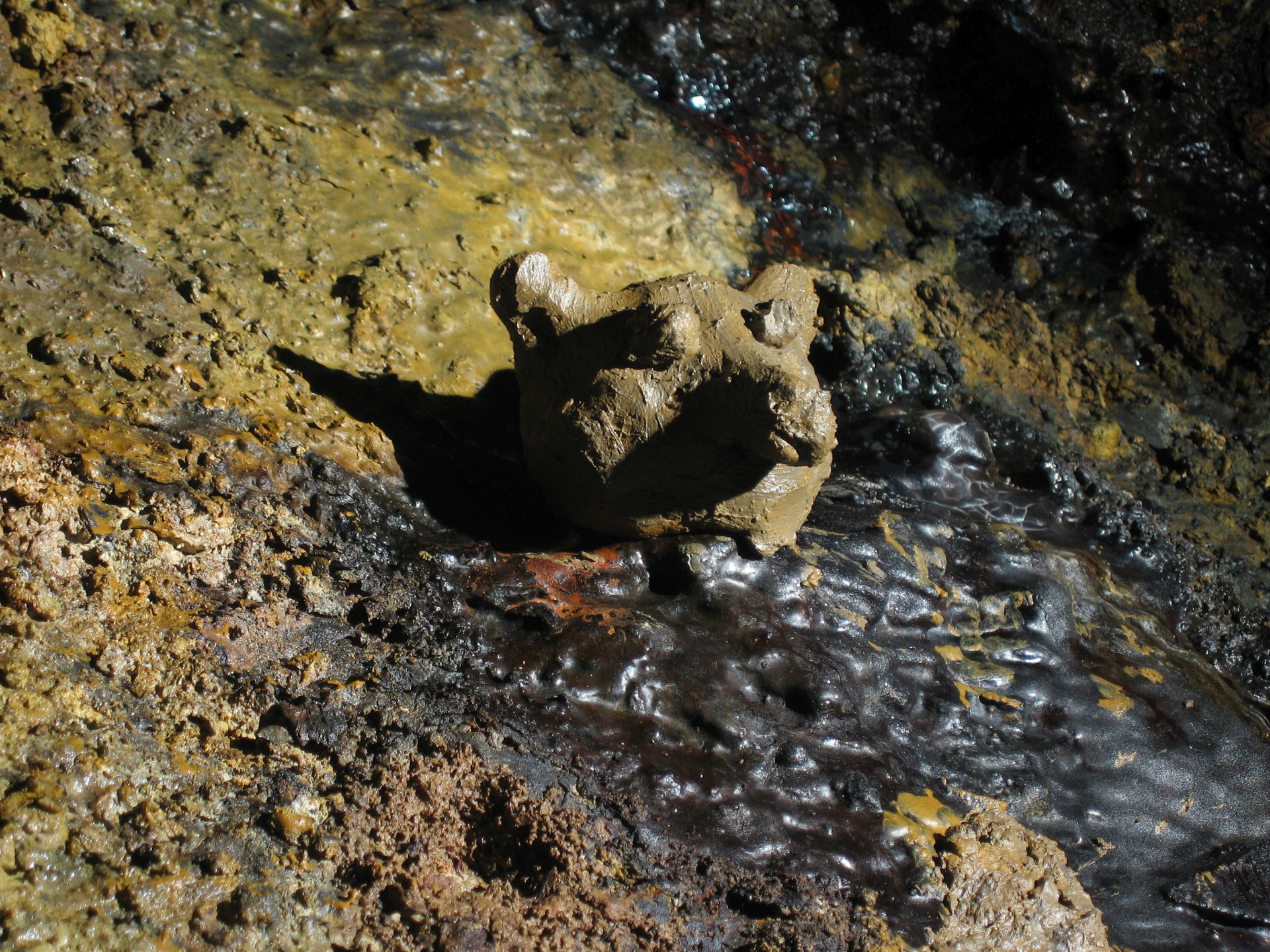 Ich kann leider nicht genau sagen, was sich unter der Sinterschicht verbirgt. Vielleicht kann das ein Mitleser für mich beantworten. Interessant finde ich das Bild mit der Fledermaus. Ist das nur eine Pigmentstörung oder etwa ein Pilz? Ich habe mal gelesen, daß in Amerika viele Fledermäuse durch einen Pilz während des Winterschlafes ausgelaugt worden sind, so daß diese dann gestorben sind.