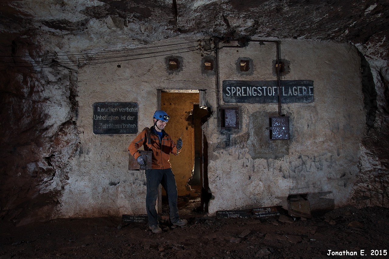 Foren-Profi Axel bei der Erkundung des Flachen Kunstschachtes der Mende'schen Kunst auf der Neuen Hütte bei Wimmelburg.
