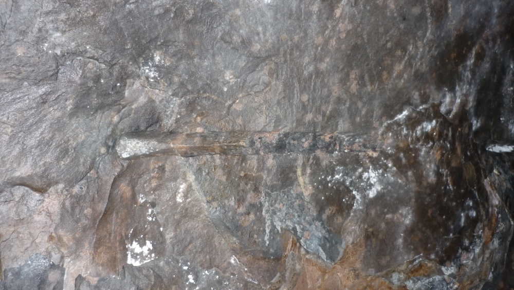 Klüften, an einer Stelle scheint man ein kleines Erznest (vielleicht 1 x 1 x 0,3 m)