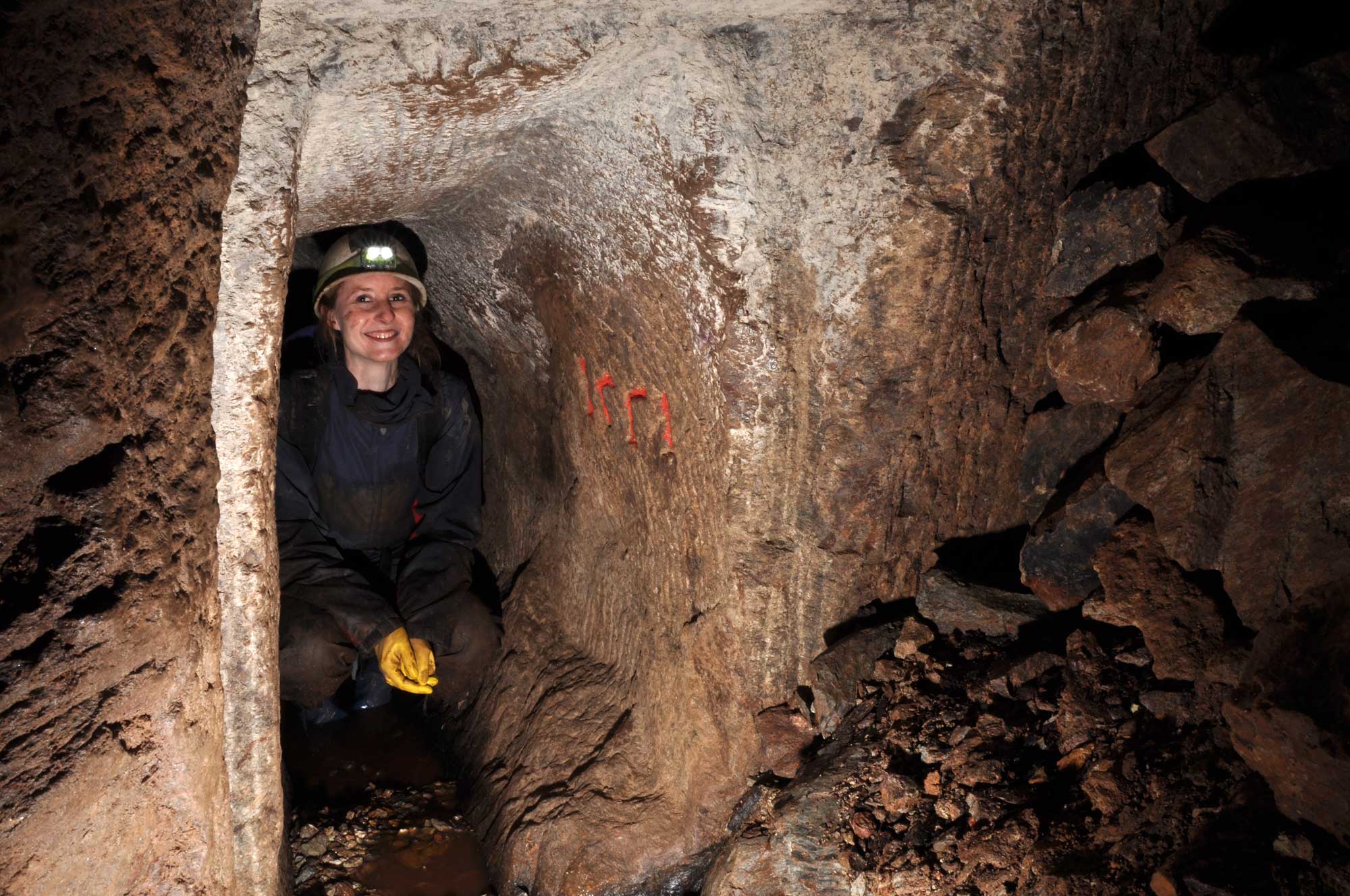 Relikte der Wismut in einem Altbergbau-Stolln.