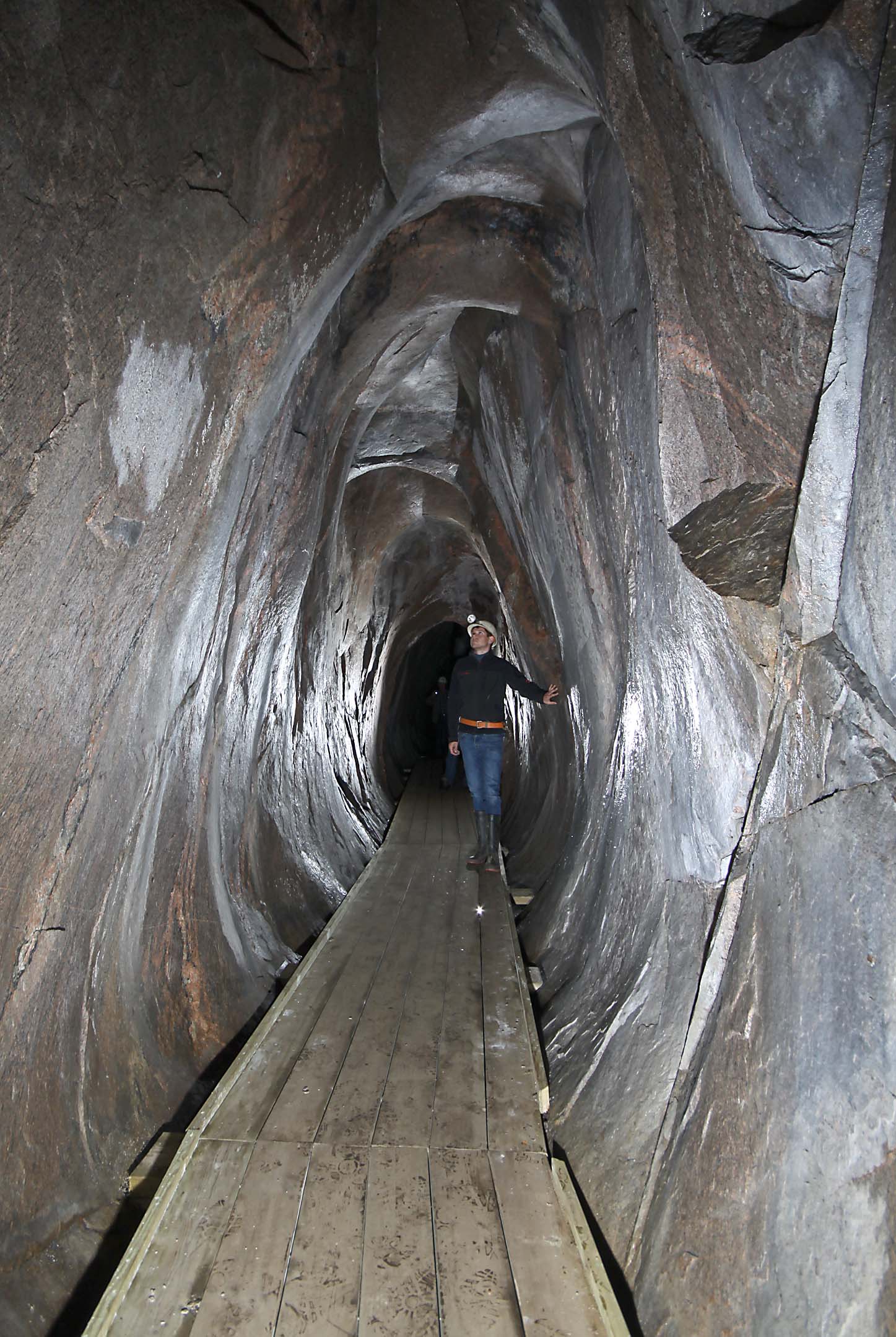 Relikte der Wismut in einem Altbergbau-Stolln.
