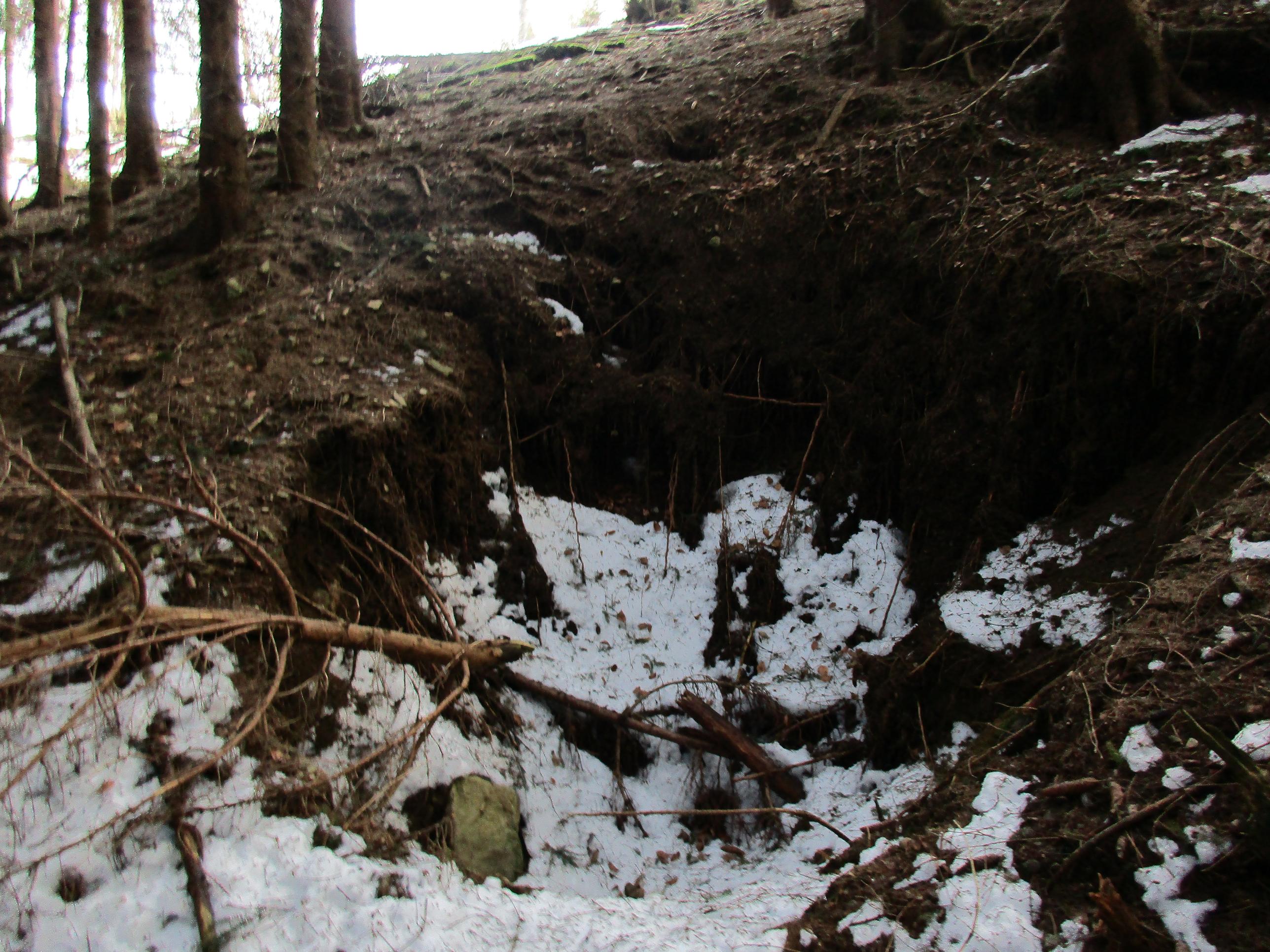 Der Tagesbruch ist sehr jung und hat jetzt die Maße: Durchmesser 3 m und tief ca. 2,50 m