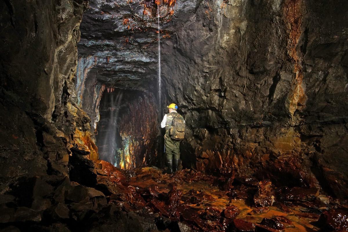 Großzügig aufgefahrener Förderstollen aus einer Eisenerzlagerstätte.