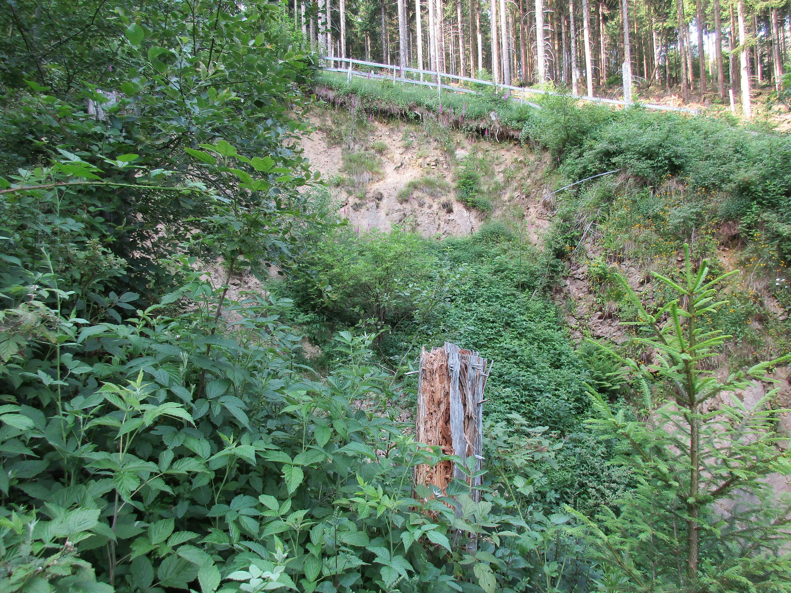 Hier war Stollen Max 1 und unterhalb vom Stollen befindet sich Betonfundament der Seilbahn.