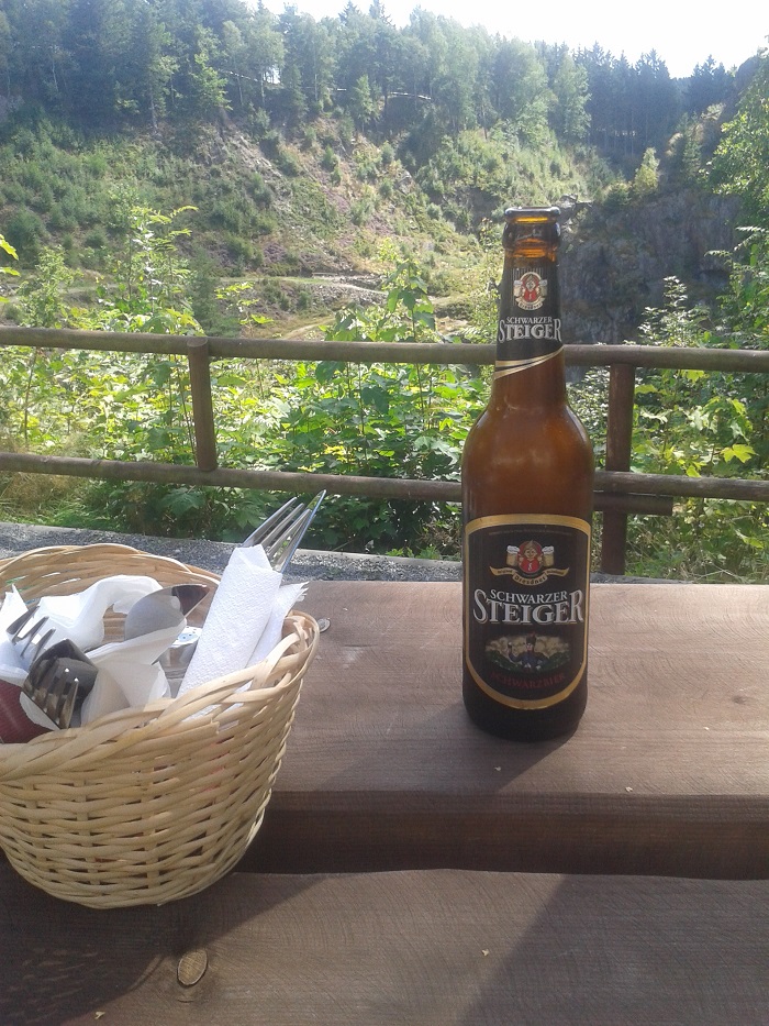 Hier hat das Essen samt Getränk gleich viel besser gemundet...Blick in die Geyrische Binge vom Restaurant "Huthaus" gesehn. (nur ein schneller Handyschnappschuss