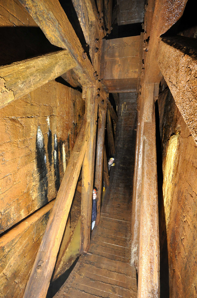 Eine sogenannte Traufe im Glückaufstollen. Stollenprofil an dieser Stelle ca. 1,20 m hoch und ca. 0,80 m breit.