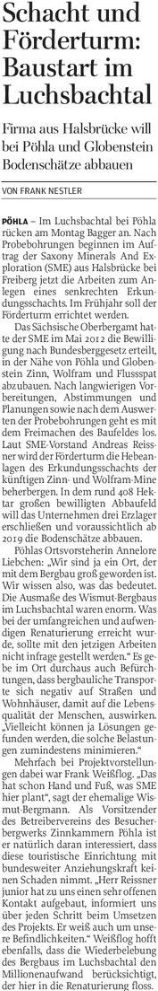 Hier mal die Meldungen der Freien Presse in den vergangenen Tagen.