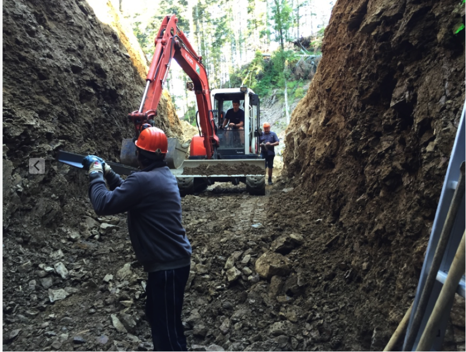 Am ersten Tag wurde sehr viel Erdreich bewegt und jede Menge Grubenholz!