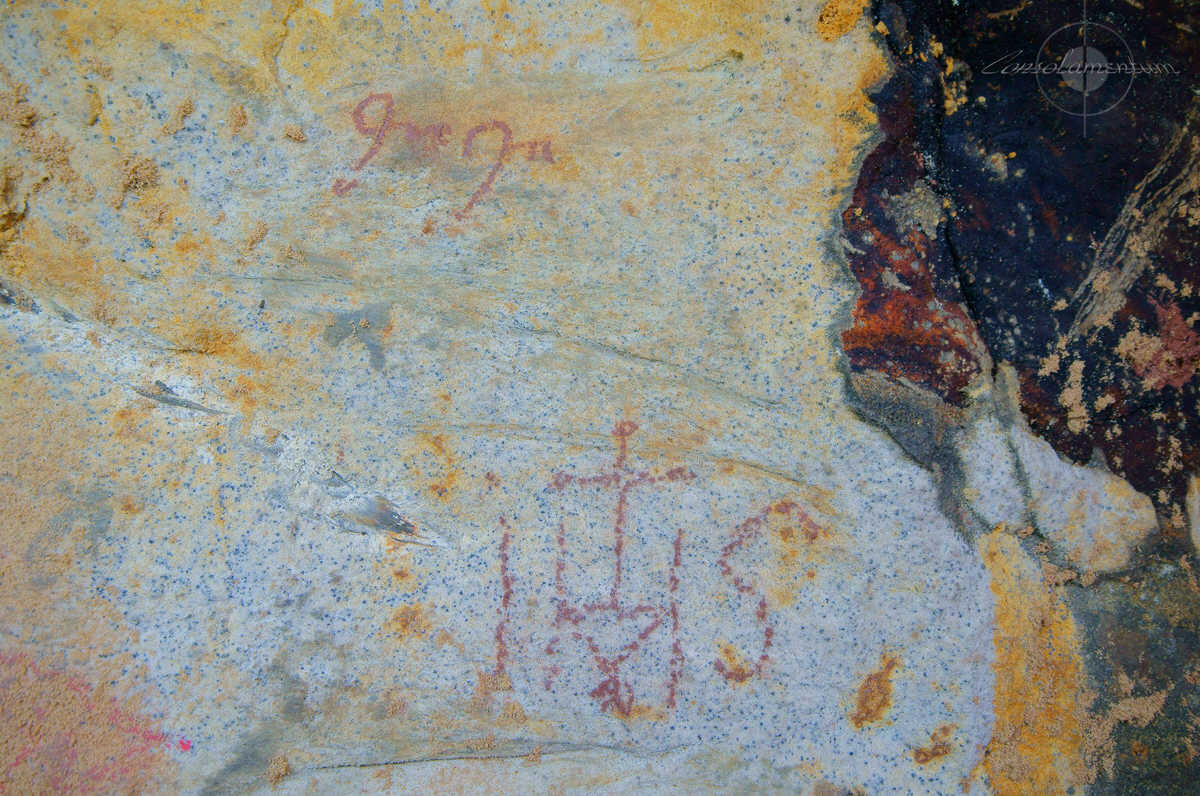 2 vollständig erhaltene Haspelstützen. Jede unvorsichtige Bewegung und eine damit verbundene Berührung könnte das Ende für diesen seltenen Anblick bedeuten.