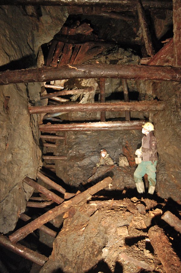 ... Blindschacht in einer Kupfergrube. Es sah alles unberührt aus. Als ich jedoch am Schachtgrund einen mit Gesteinsbrocken verschütteten Stollen aufgewältigt habe, sah ich ein rotes Leuchten. Leider entpuppte es sich als uralte Coladose. Die mit dem alten Verschluß und mit eingeprägten Daten. Entweder hat die Bande die Dose den Schacht runtergeworfen und die ist in den Stollen gerollt oder die waren wirklich unten...
