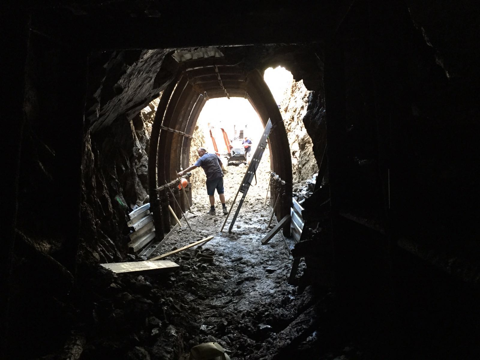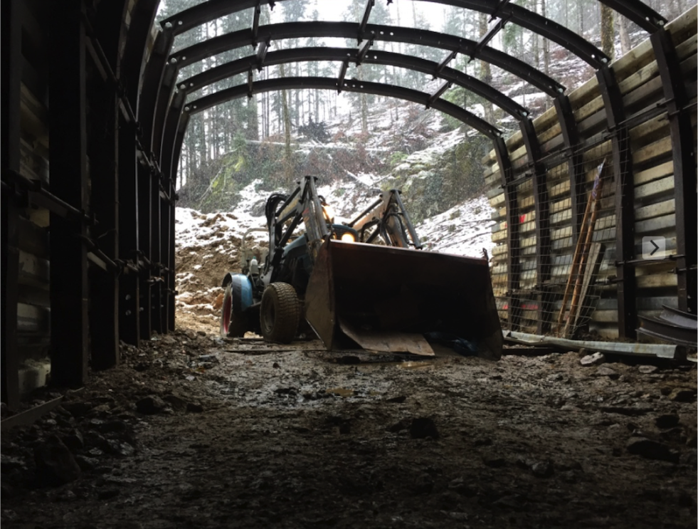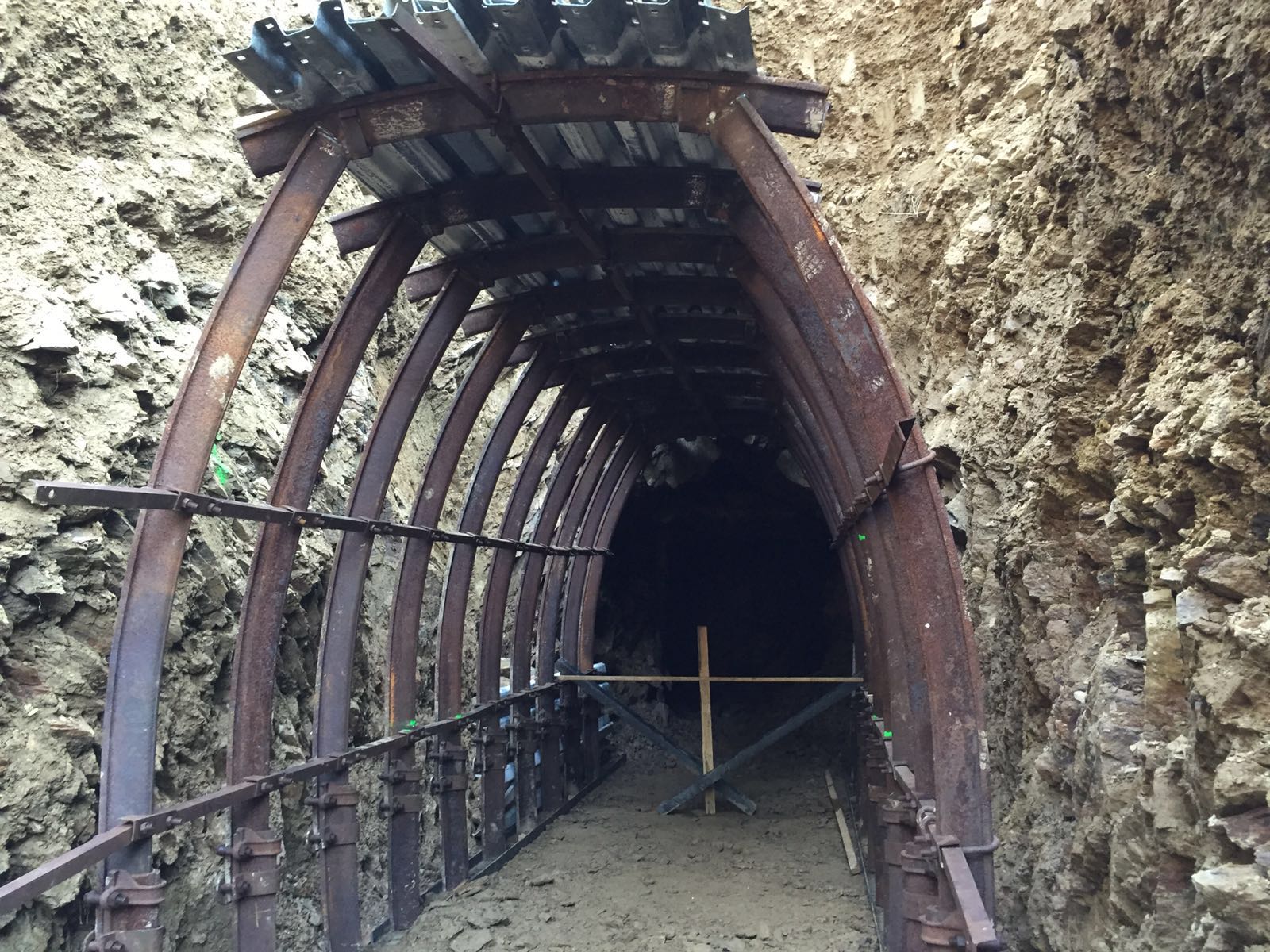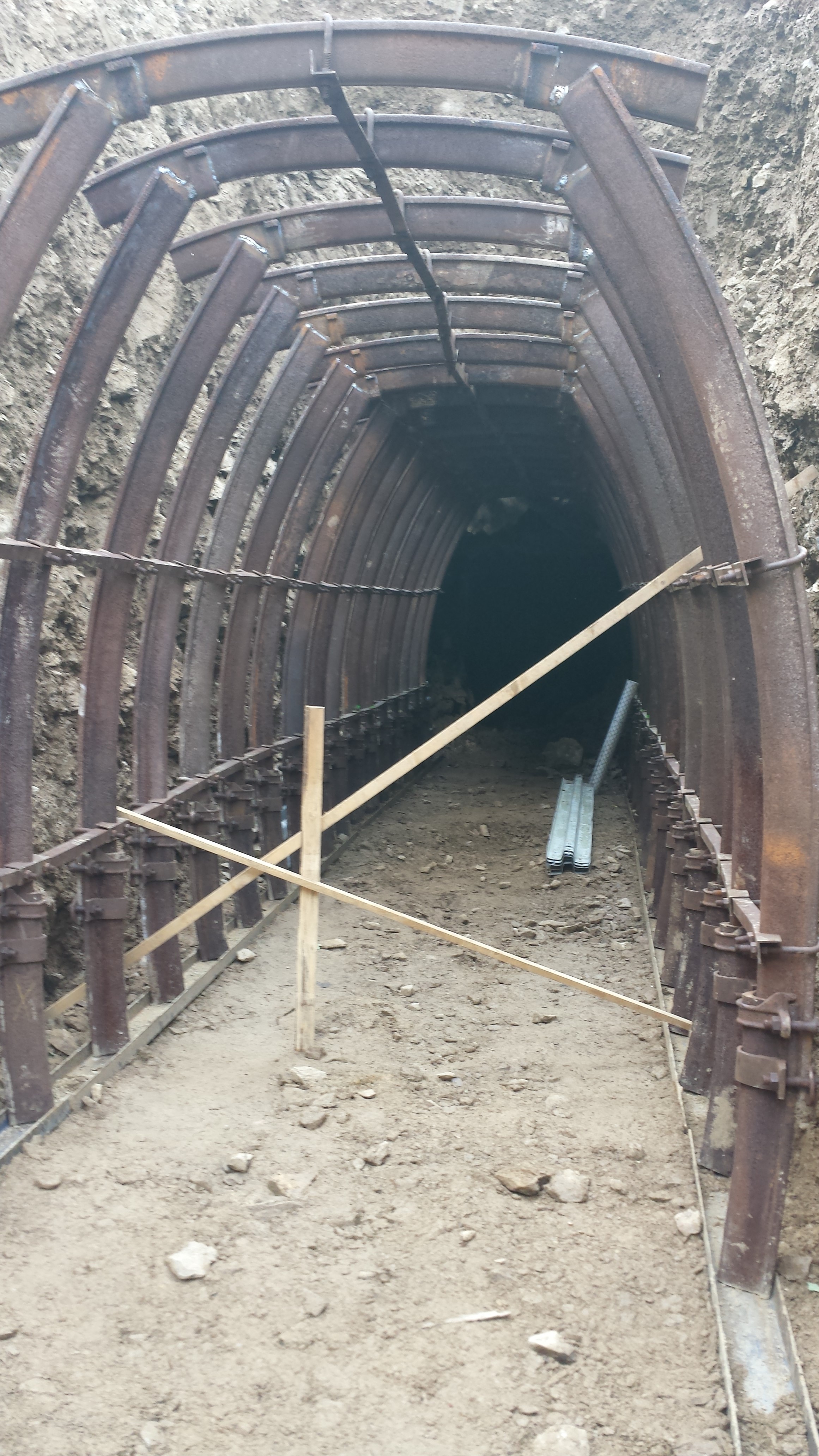 Die Aufrüstung der Baustelle ist auch vollzogen worden und die Sicherungsarbeiten im Stollen gehen auch voran.