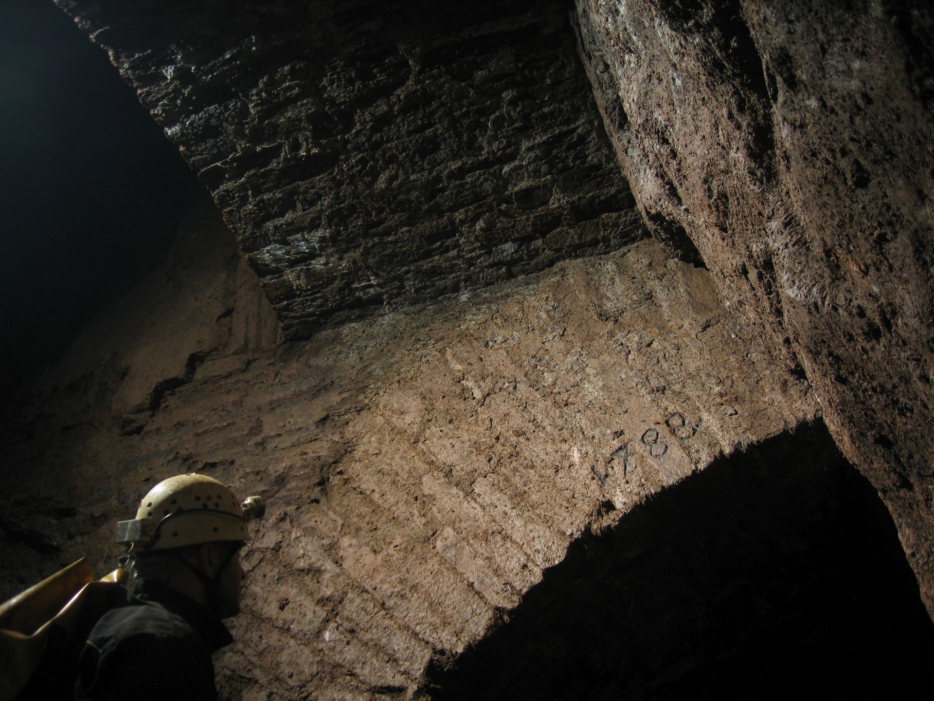 Mächtige Gewölbemauerung an einem Schacht mit Jahresdatierung "1788".