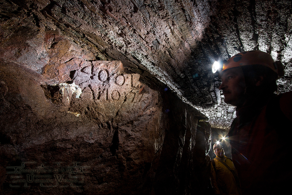 Stollnauffahrung des 18. Jahrhunderts im Quergestein kreuzt hier einen Morgengang. Möglicherweise sind die glatten Flächen Reste eines Wetterdamms.