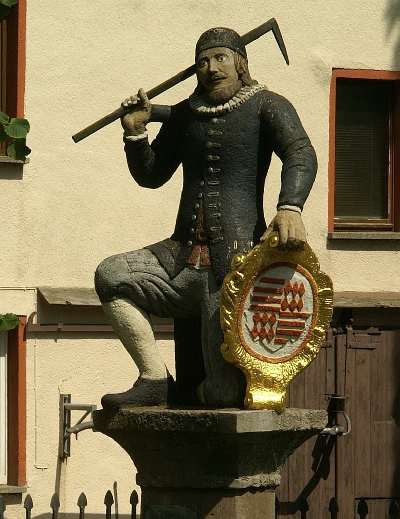 Die Bergmannsfigur wurde 1590 nach Beendigung des Baues des Neustädter Rathauses in Eisleben, diesem gegenüber aufgestellt. Als Stifterin gilt die Gräfin Margarete von Mansfeld-Hinterort, die auch das Neustädter Rathaus erbauen ließ. Mit diesem „Denkmal“, setzten sich der Mansfelder Bergbau und die Eisleber Neustadt ein in der deutschen Denkmallandschaft einzigartiges Symbol. Es ist das älteste in Deutschland bekannt gewordene profane Denkmal, das einen Arbeiter auf einem Sockel zeigt. Kein anderer Wirtschaftszweig hat es im 16. Jahrhundert gewagt, sich derart darzustellen und sein Selbstbewusstsein zu demonstrieren.