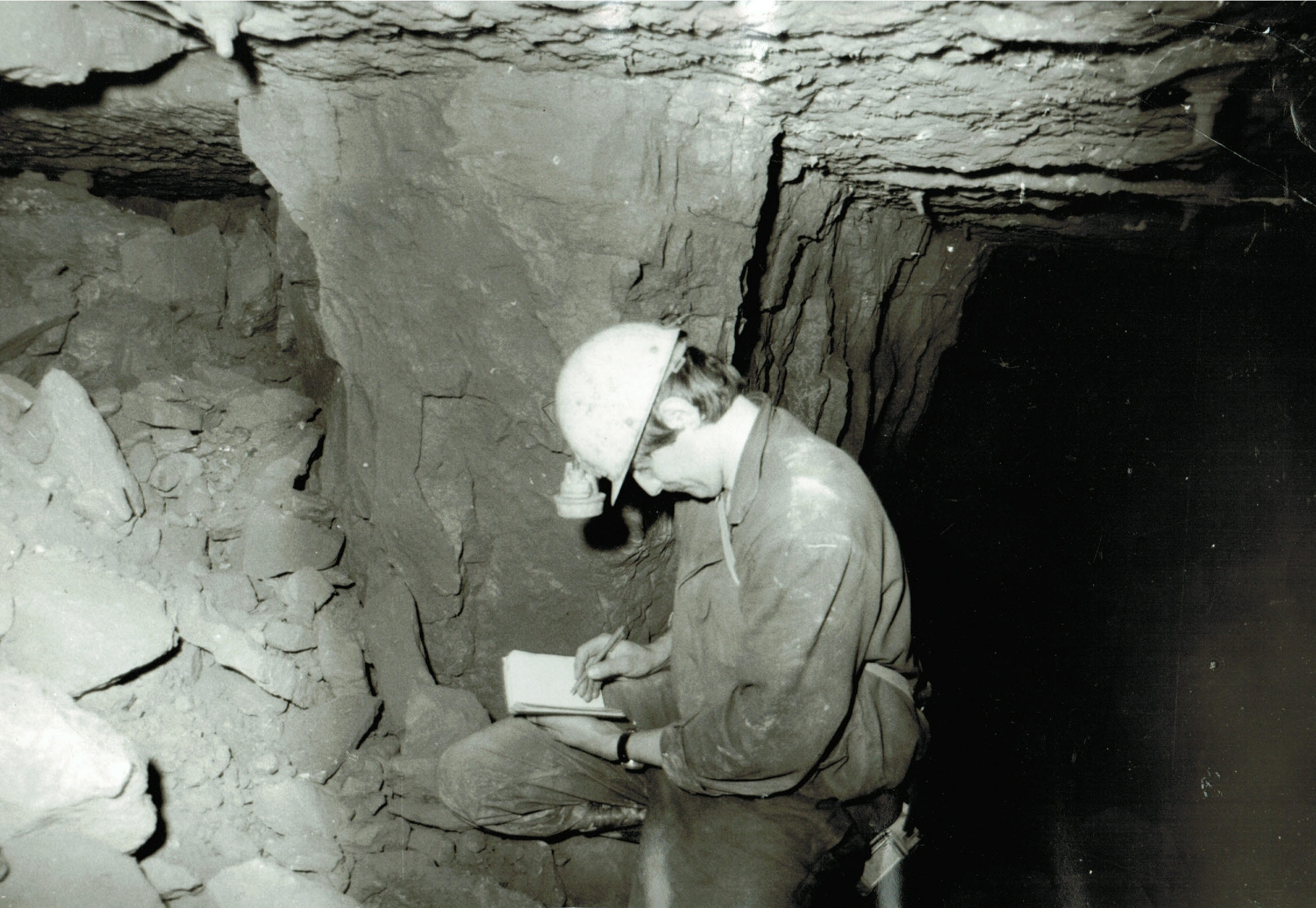 Bei der Auswertung einer Magazinierungssprengung im Block 1637 - Jugendbergbaubetrieb Königstein 1985