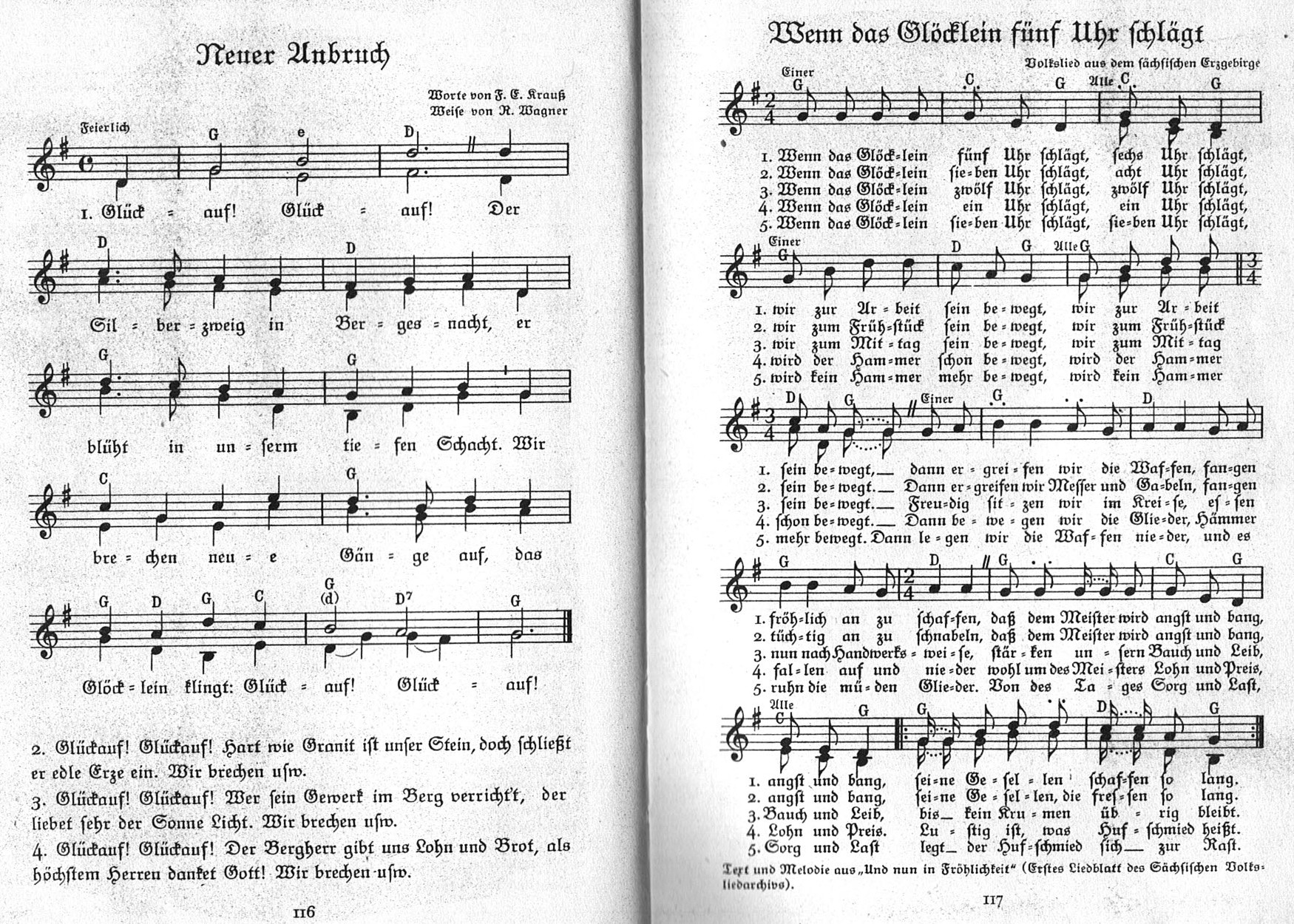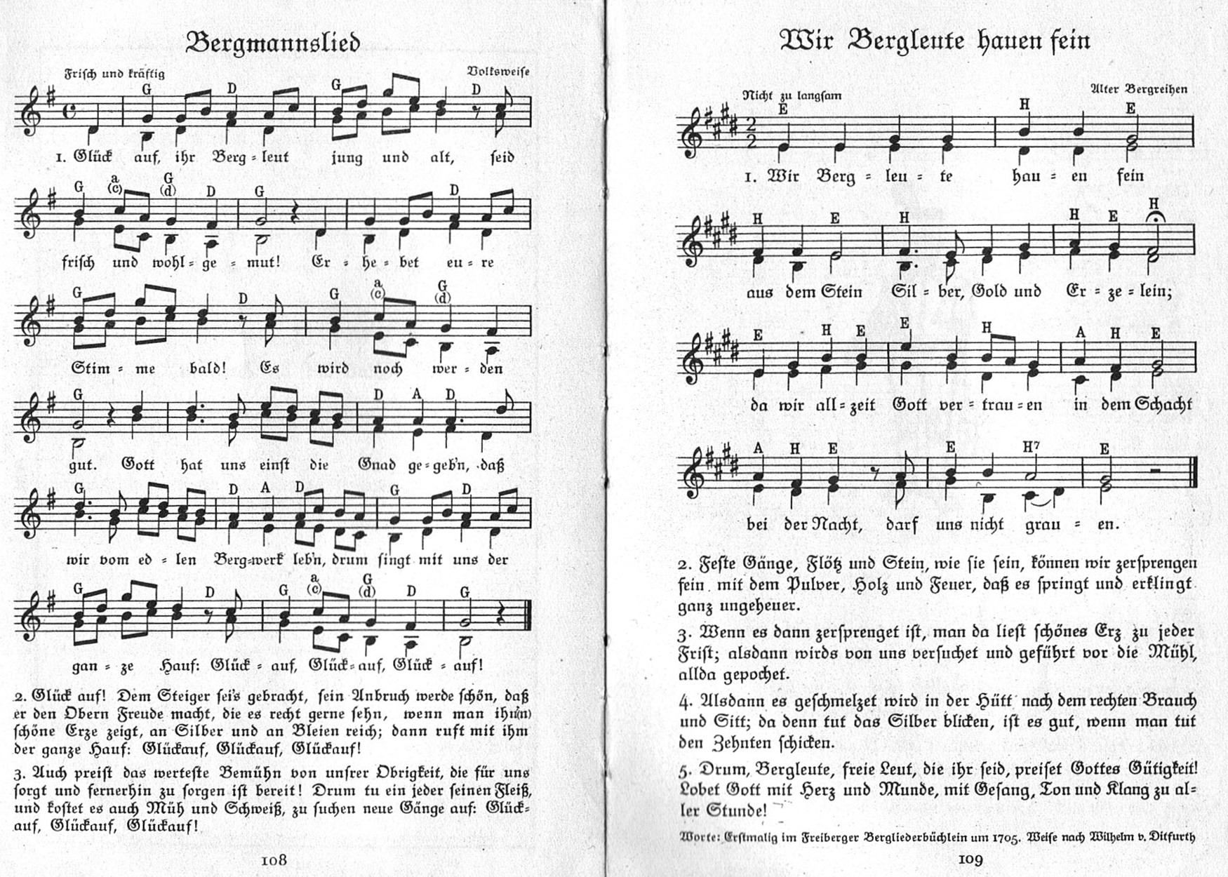 Ich habe in einem Gesangbuch folgende Bergmannslieder gefunden.
