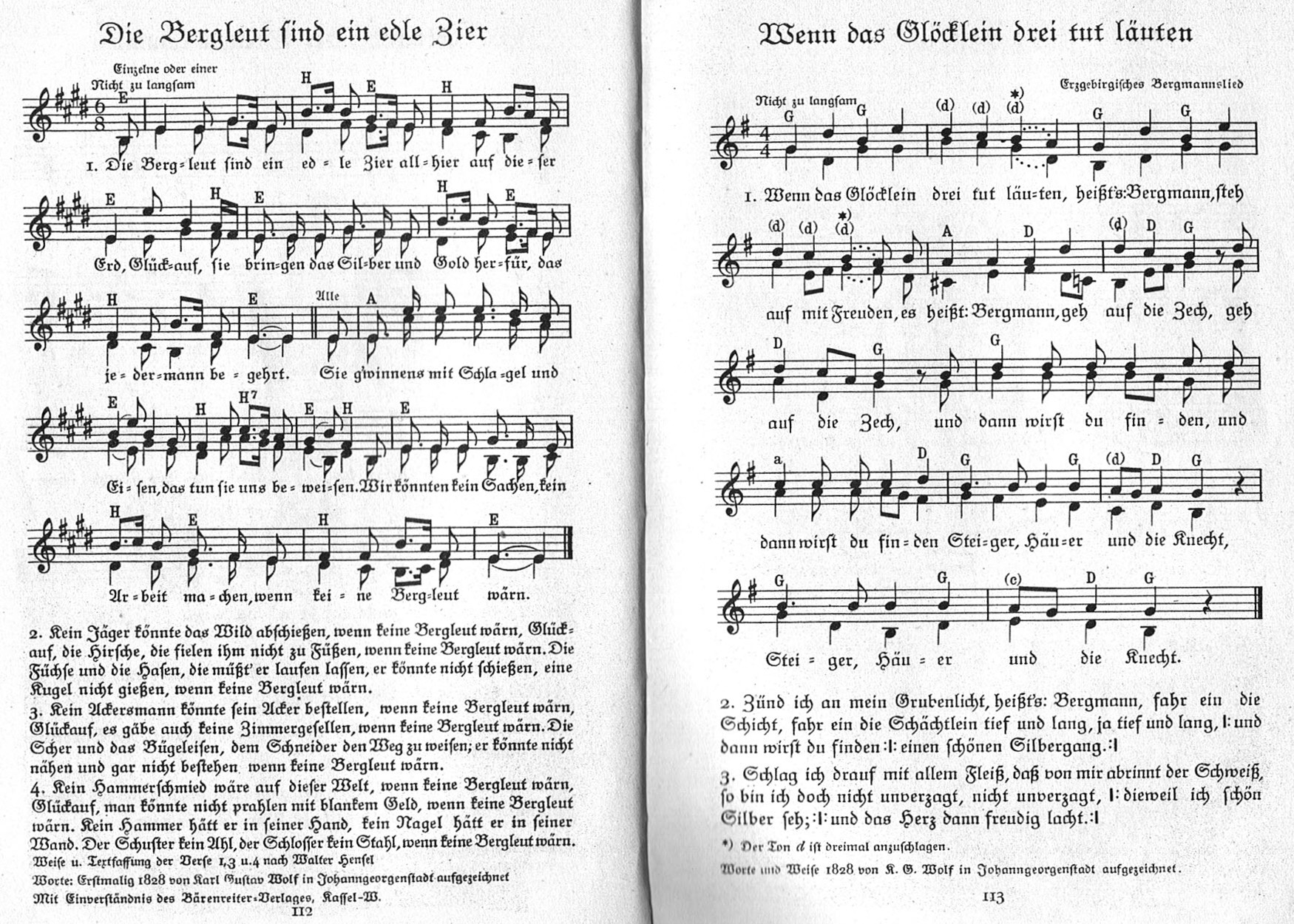 hat vielleicht Jemand die Noten zu folgenden beiden Bergmannsliedern? (Rheinland um 1800)