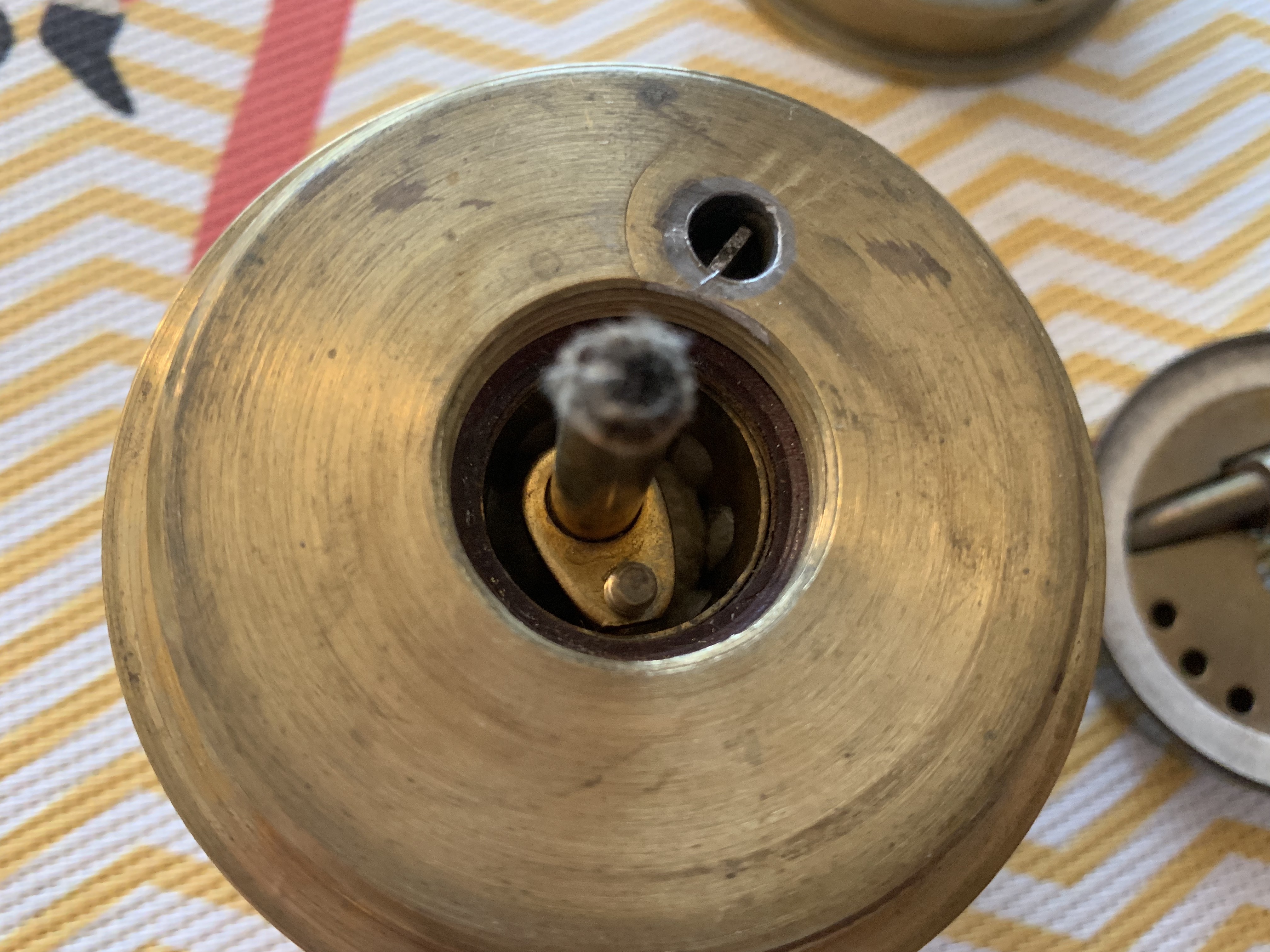 Ich habe versucht, die Lampe soweit wie möglich auseinanderzunehmen, und finde eigentlich nur eine Öffnung, wo man das Benzin einfüllen könnte (s.Bild), aber das hieße, man würde das Benzin sozusagen über den Docht gießen, und eigentlich sollte man doch, soweit ich gelesen habe, eher die Watte damit tränken. Die ist bei meiner Lampe aber so im Rand vom Lampentopf eingefüllt, dass man eigentlich nicht dran kommt...