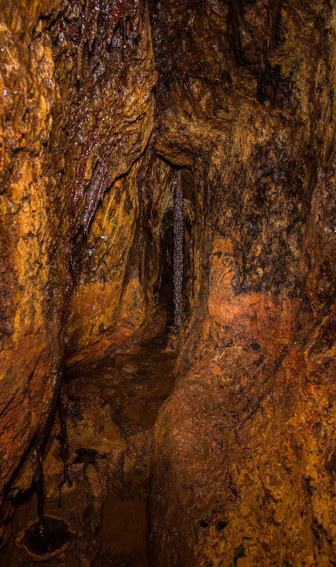 St. Anna am Freudenstein Zschorlau, ein Stalagnat versperrt den Weg. Guter Trost Stolln