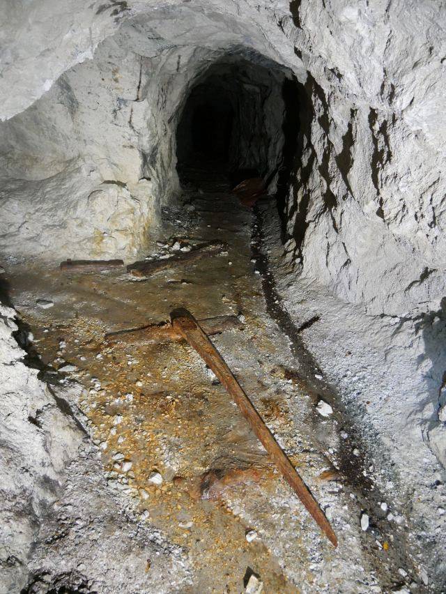 Reste eines "Englischen Förderwagens" auf dem Froschmühlenstollen-Querschlag, zu datieren auf 1908 (Dank an Thomas Wäsche). An eben dieser Stelle wurden seit 1805 "Berge" (= taubes Gestein) in Teile der Wimmelburger Schlotten verkippt, die damals unter Wasser standen und in ihrer Ausdehnung noch gar nicht bekannt waren.