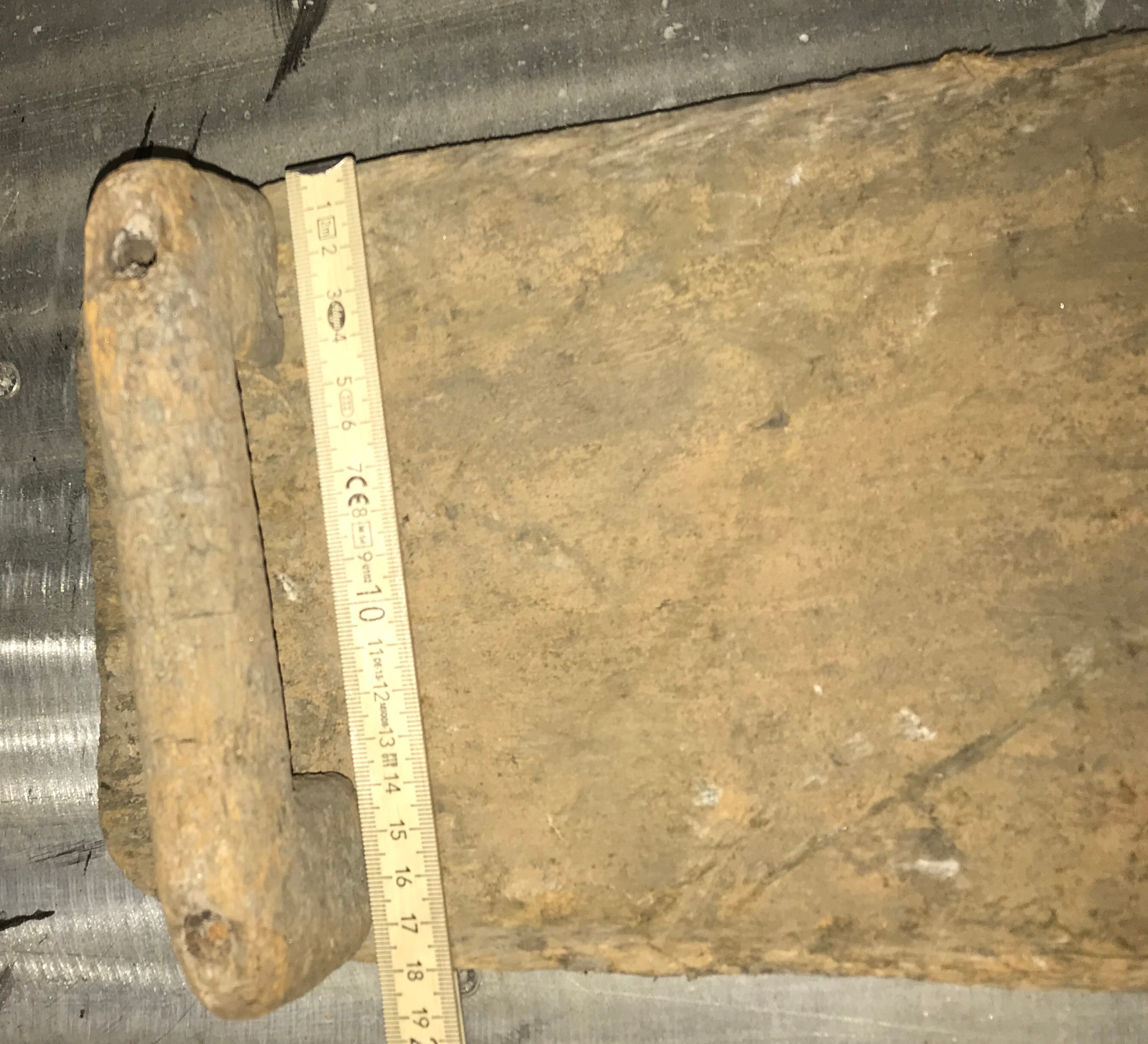 Das Brett ist aus Fichte/Tanne, der Griff aus Eiche und die Leisten auf der Unterseite auch aus Eiche. Die haben aber den Trocknungsprozess nicht überstanden. Ebenso die eichenen Holzdübel...