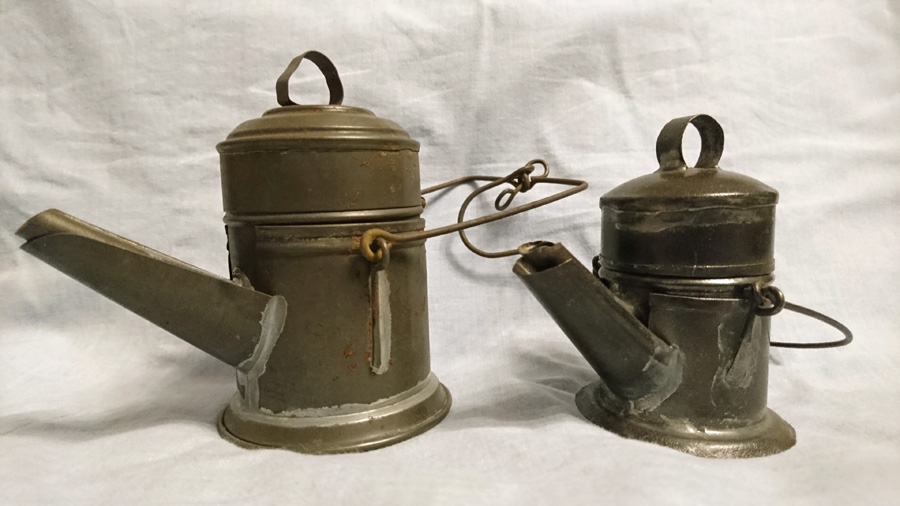 Ich greife das Thema gern nochmal auf. Ich besitze leider kein Original einer dieser Lampen aber einen Nachbau von Andreas Koch. Ich hatte mich mit Wassermann mal über diese Lampen unterhalten und er meinte das Andreas diese mit viel Aufwand herstellt und die früher sicher auch extra Werkzeuge dafür anfertigten. Ich bin aber einer anderen Meinung! Ich habe sehr sehr viele Bilder sowie in letzter Zeit auch originale in der Hand gehabt und stellte fest das nicht alle industriell gefertigt worden sind. Aus diesem Grund versuchte ich mit primitivsten mitteln ein solches Geleucht zu erschaffen. Ich nahm einen Schraubendreher für die Abwicklung einen kleinen Amboss Lötkolben und einen kleinen Hammer. Das Ergebnis seht ihr hier. Vorhin hab ich mich mit einem Bergkamerad unterhalten, dieser erzählte mir das in Barsinghausen diese Lampen in einer Zentralschmiede Laut Akteneintrag gefertigt wurden sowie von einem Klemptner in Obernkirchen. Er sagte dort wurden viele Mansfeldische Bergleute abgeworben.