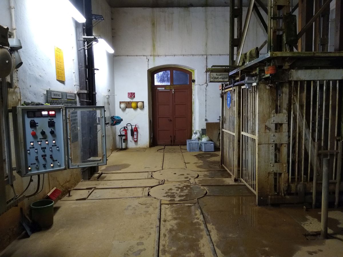 Hängebank Reiche Zeche Freiberg, links im Bild die Bedientafel für den Hauptanschläger.