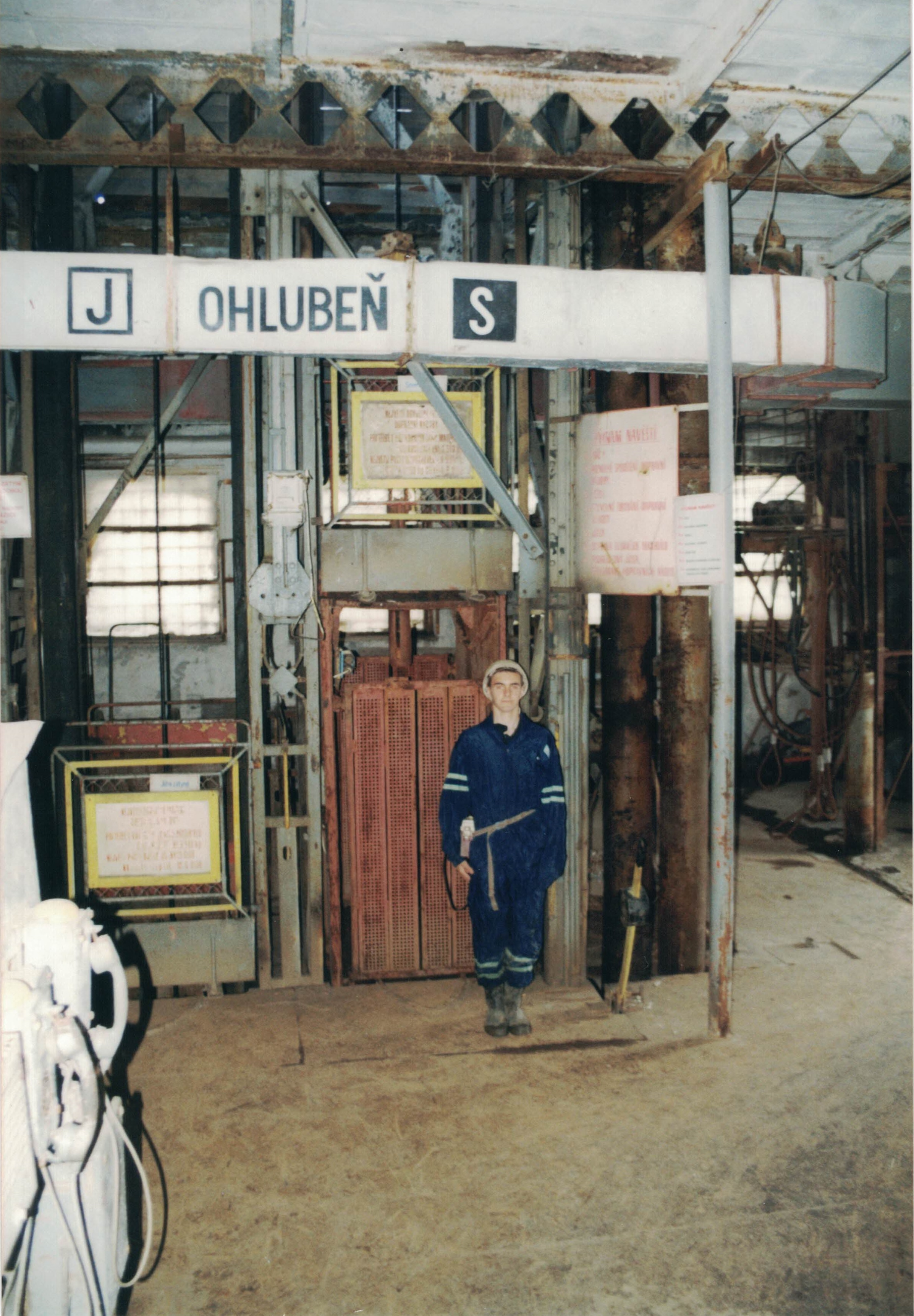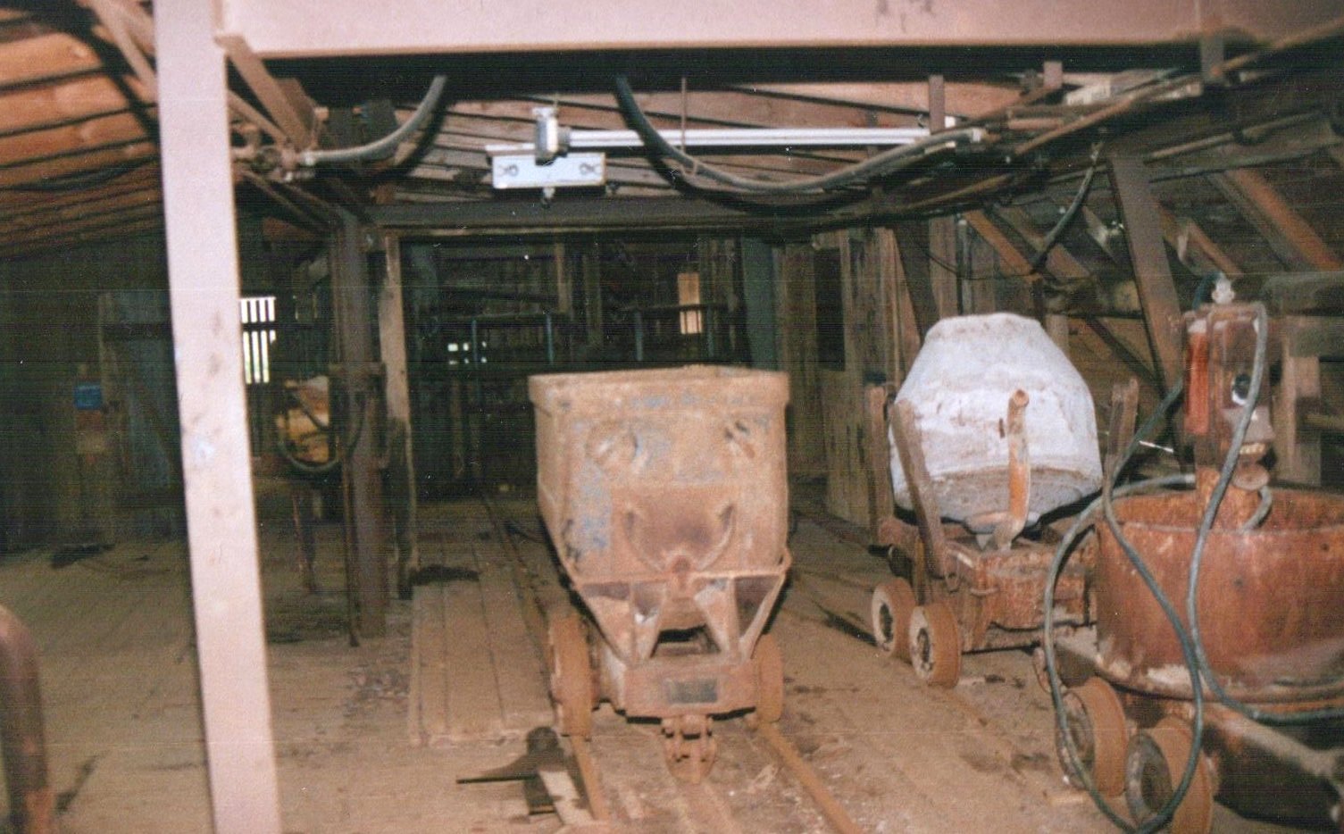 Hängebank Schacht 15 IIbis (Nordseite) in Bad Schlema bei Spezialhängearbeiten (Austausch einer B360) vor gut 3 Jahren.(Handyfoto)